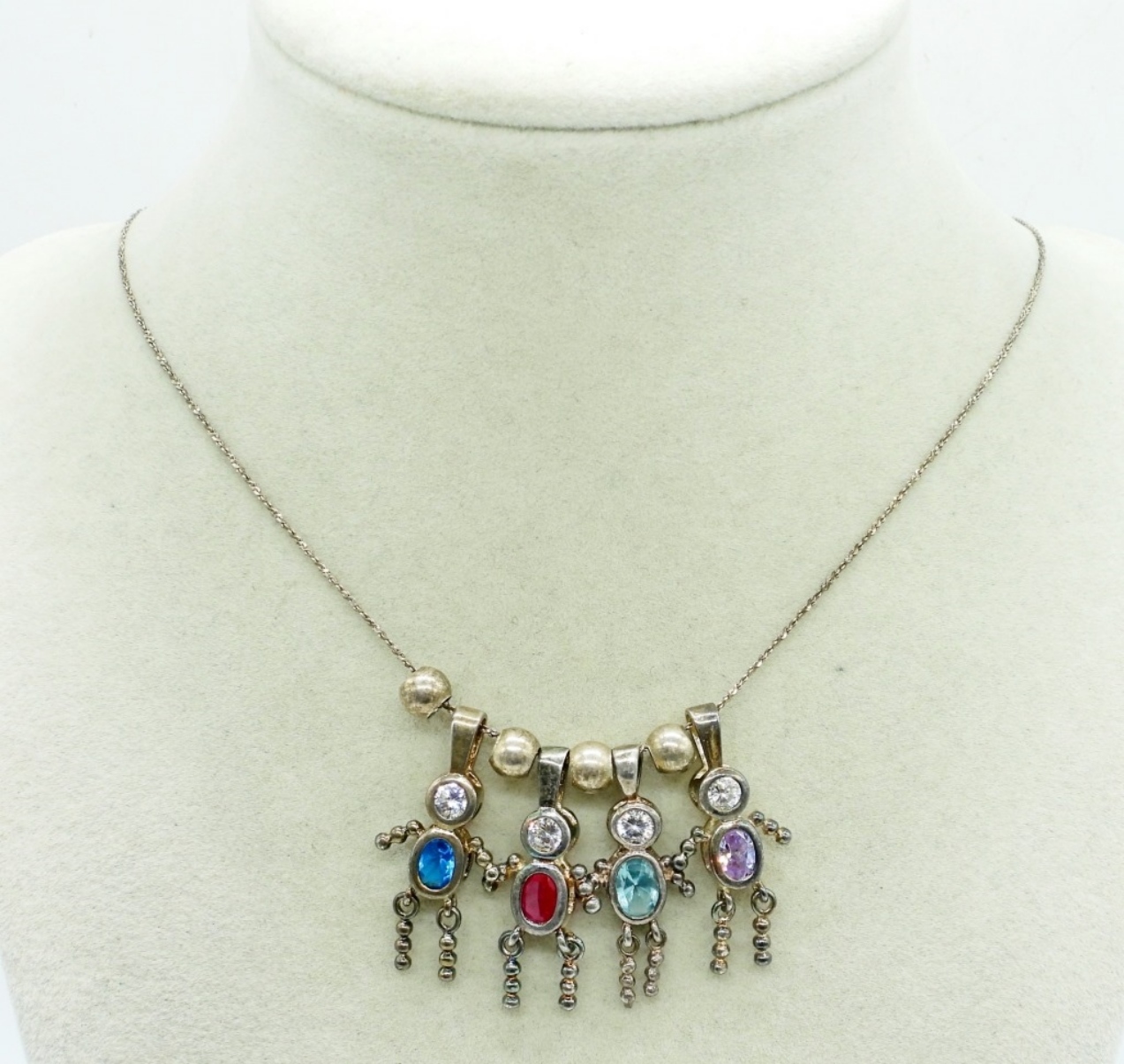 30″ STERLING CHAIN WITH 4 BIRTHSTONE PENDANTS. 7.4 DWT