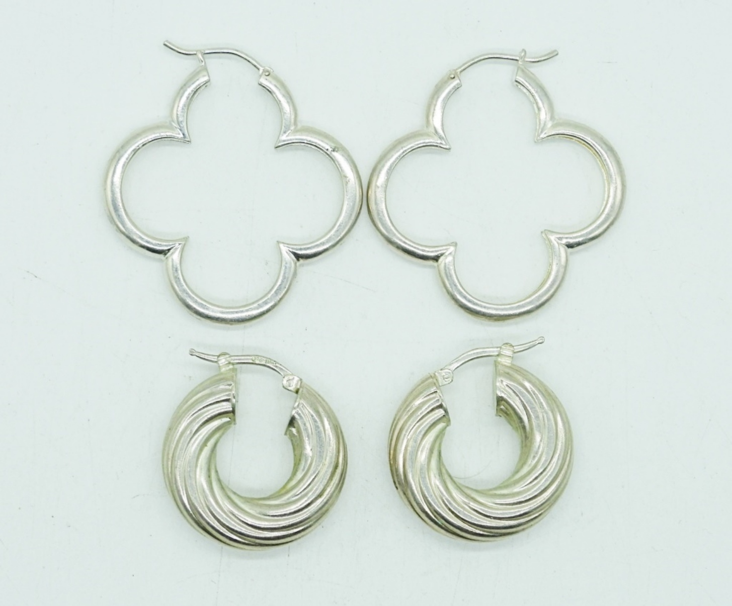 TWO PAIR OF STERLING FASHION EARRINGS, PIERCED, HOOPS. 14.7 DWT