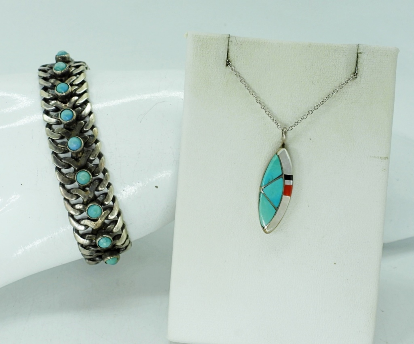 STERLING SOUTHWEST STYLE NECKLACE, 18″. BRACELET 7″. 23.4 DWT