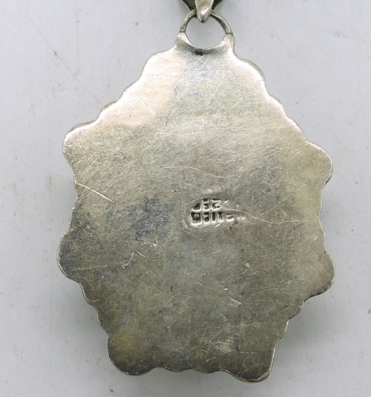 MALACHITE STERLING PENDANT “MEXICO 925″ ON AN 18”. STERLING CHAIN. 21.9 DWT