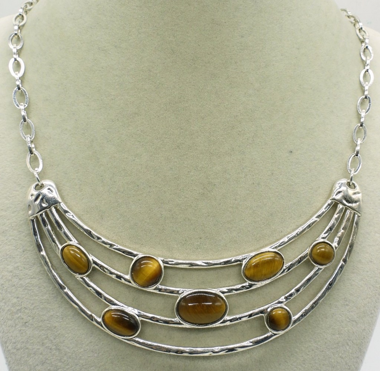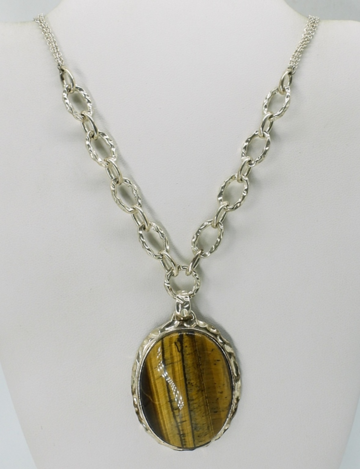 TWO STERLING NECKLACES, WITH TIGERS EYE GEMSTONES. 17″ & 18″. 41.3 DWT