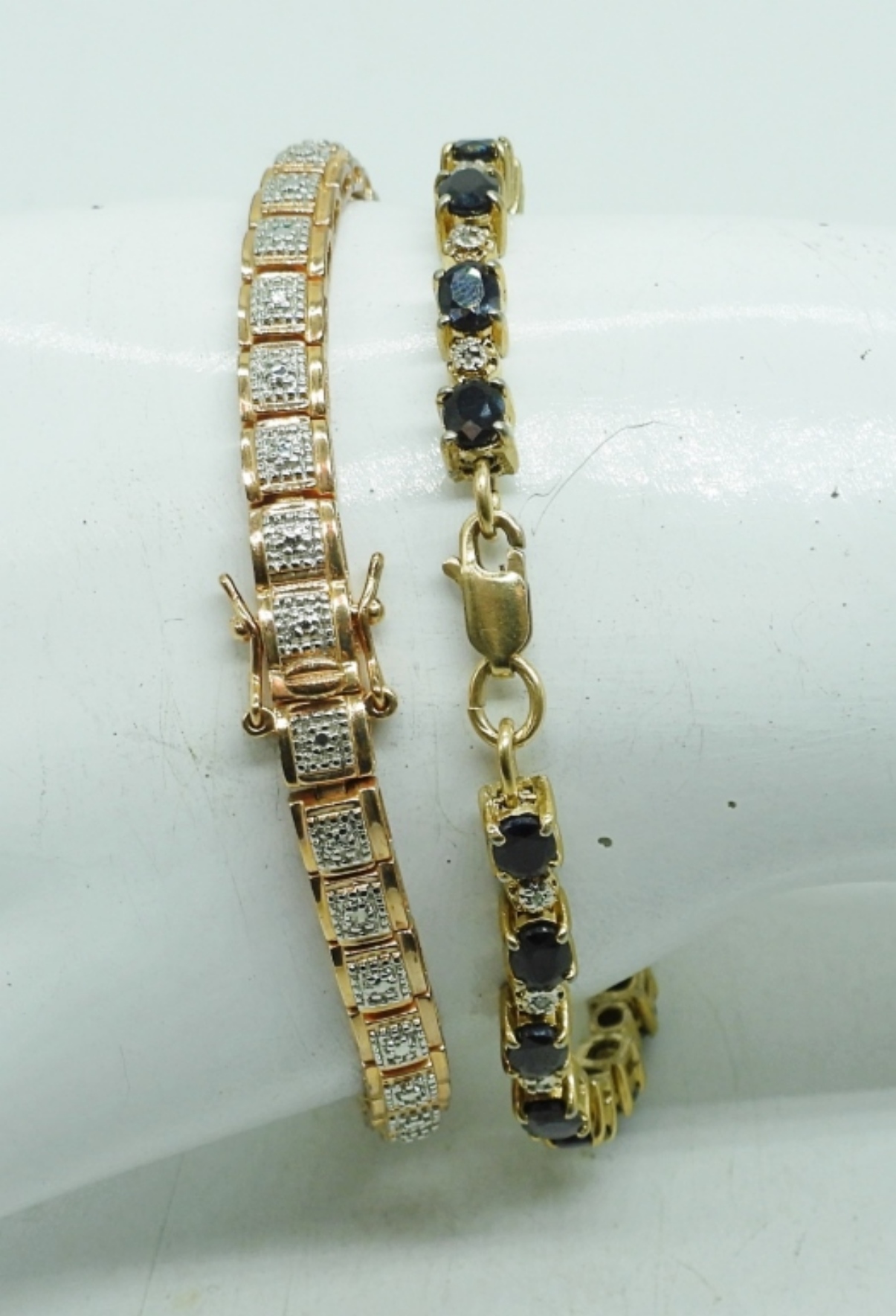 TWO YELLOW & ROSE GOLD TONE STERLING BRACELETS. 7″. 18.8 DWT