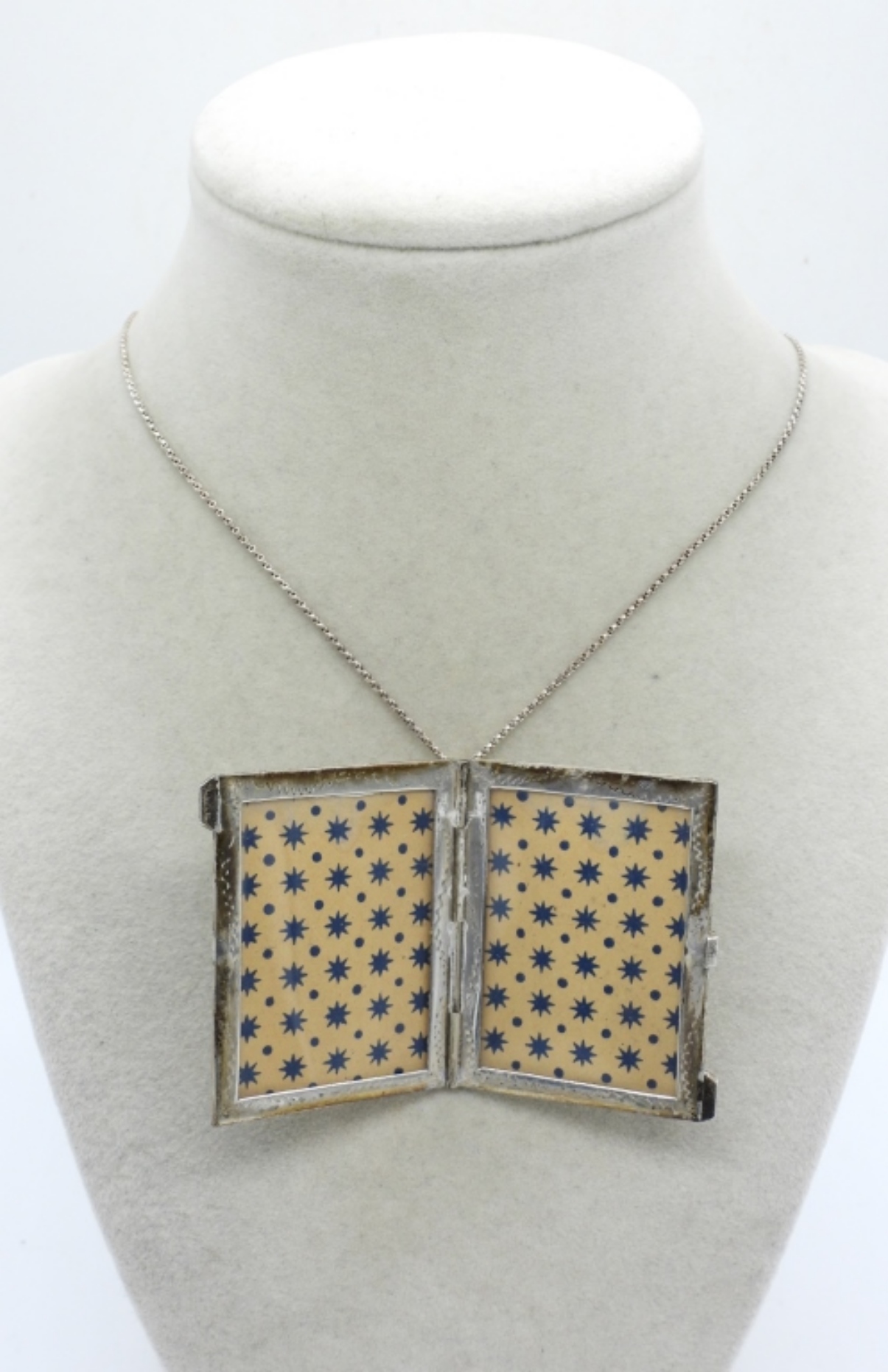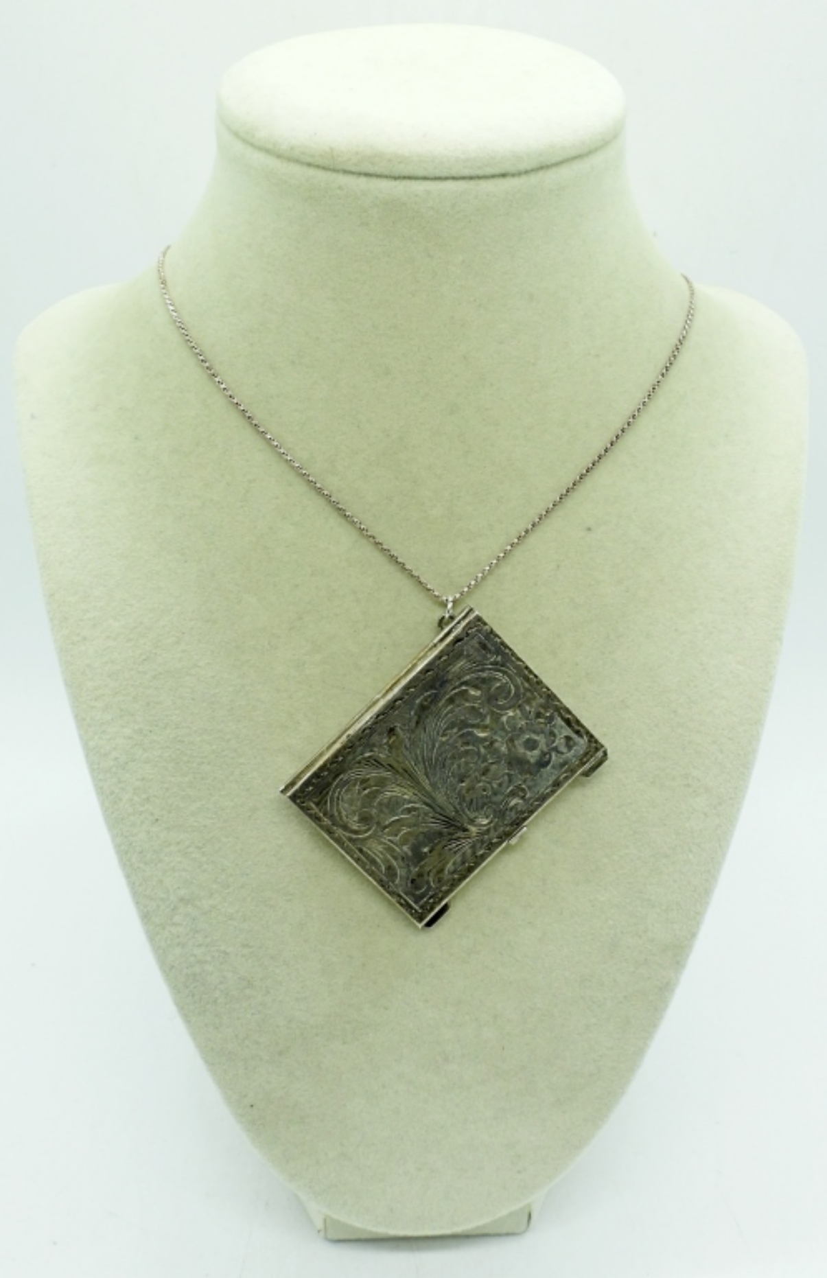 VINTAGE STERLING TRAVEL PHOTO FRAME ON A 36″ STERLING CHAIN. 14.7 DWT