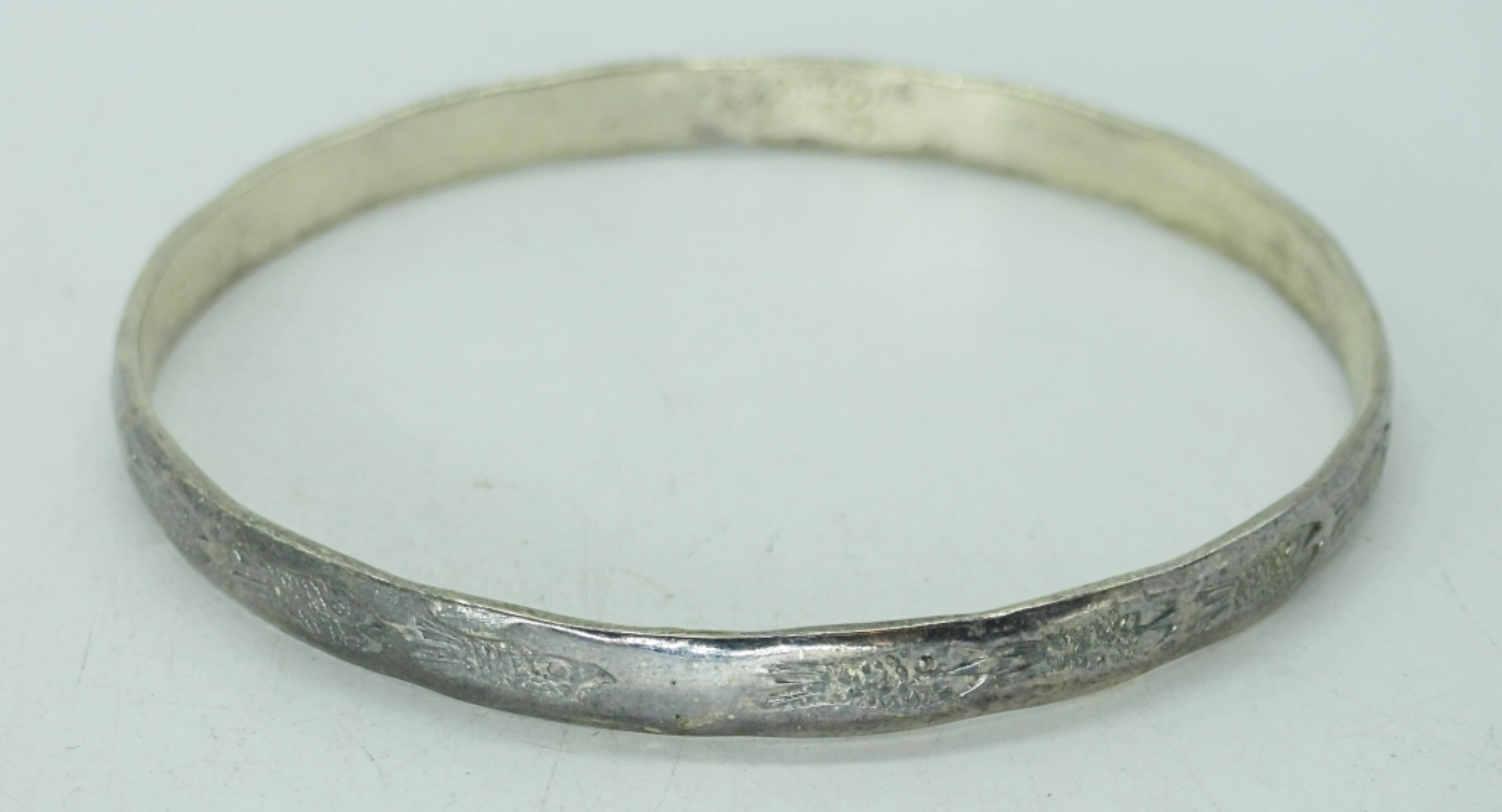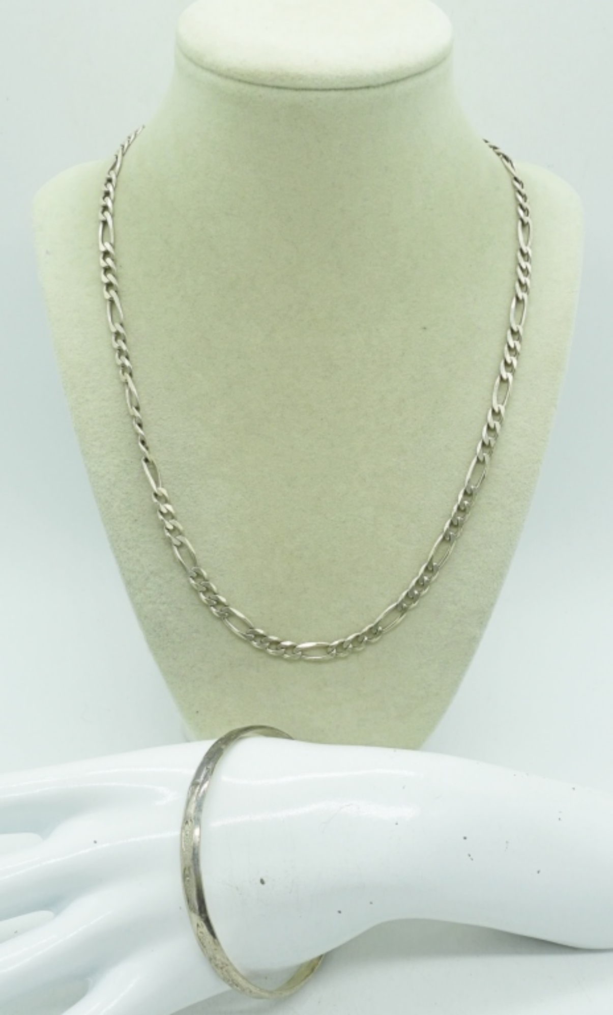 TAXCO VINTAGE STERLING, BANGLE BRACELET! STERLING CHAIN, 20″. 23DWT