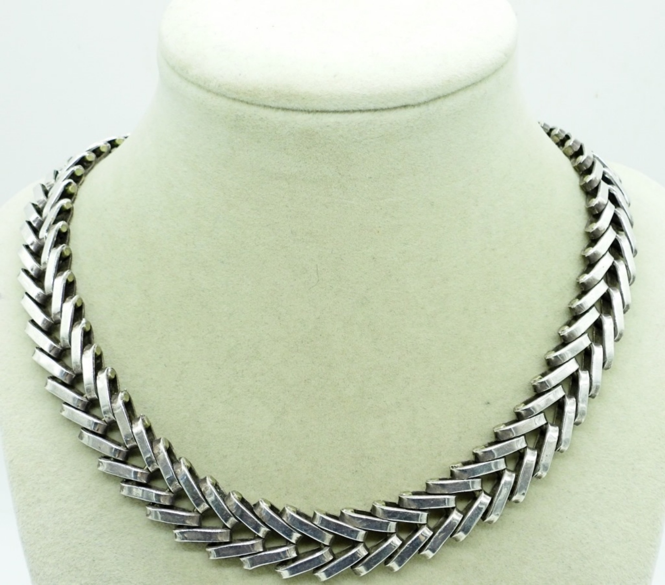 LARGE, HEAVY, UNIQUE “MEXICO 925″ NECKLACE. 16.5″ LONG. 1/2” WIDE. 55.2DWT