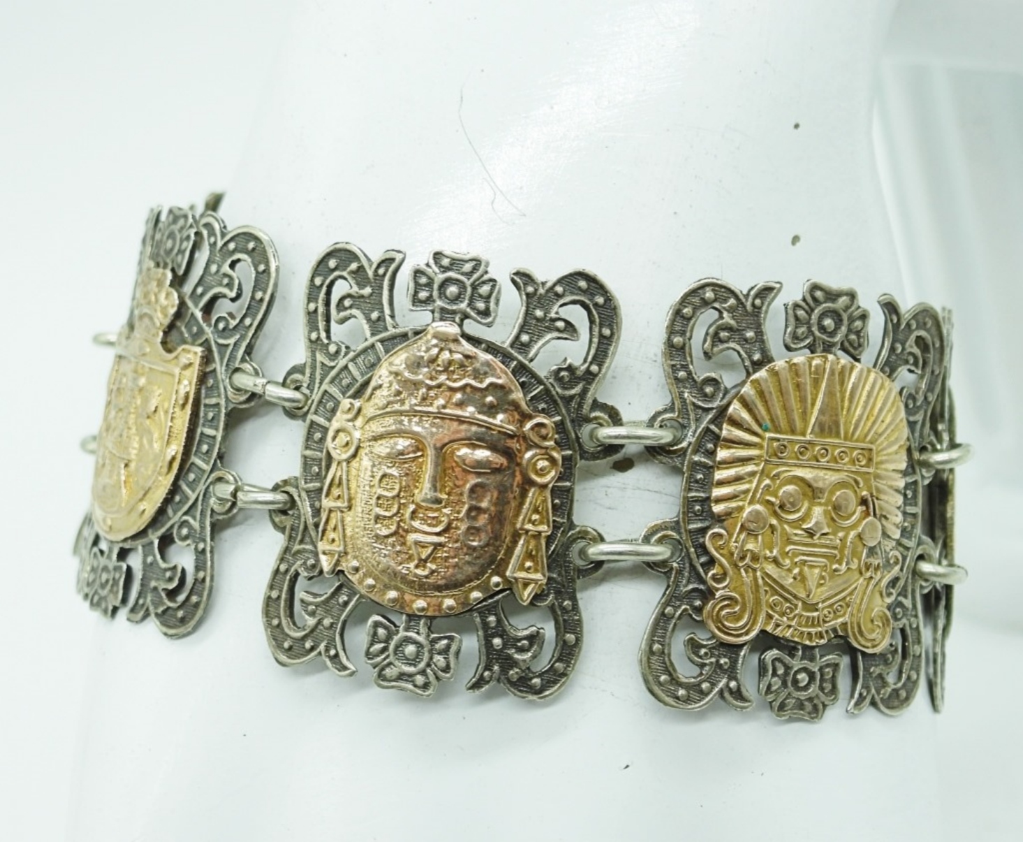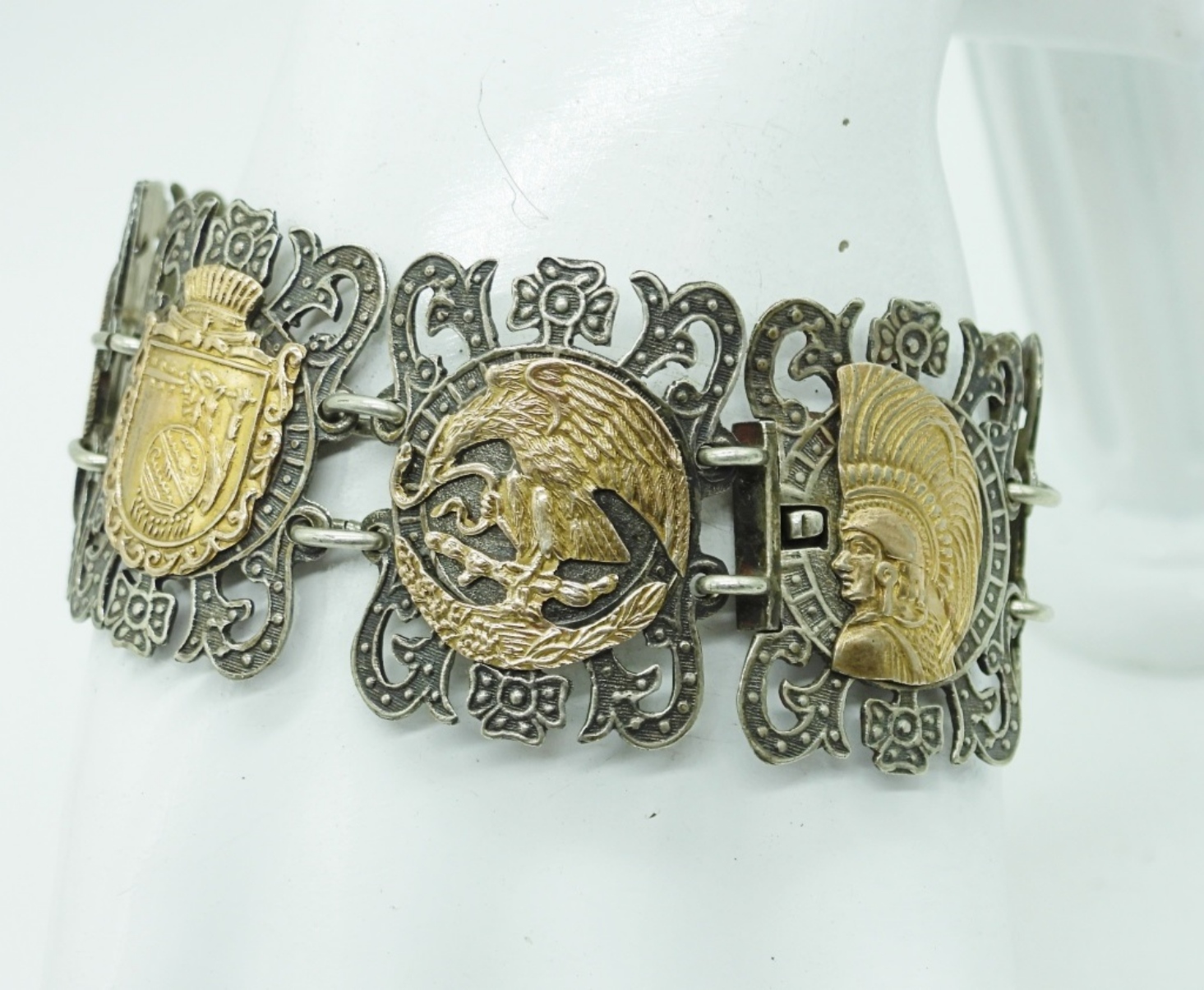STUNNING STERLING & GOLD TONE “MEXICO 925″ BRACELET. 7”. 28.1 DWT