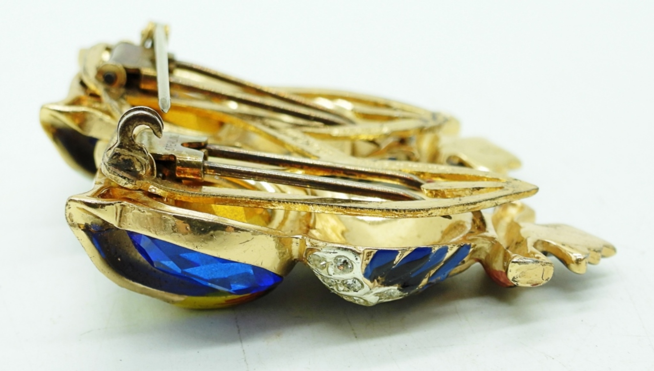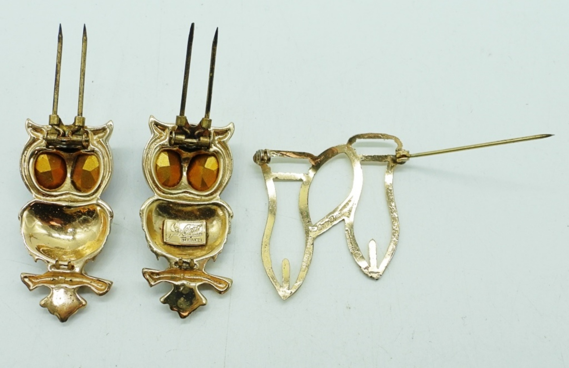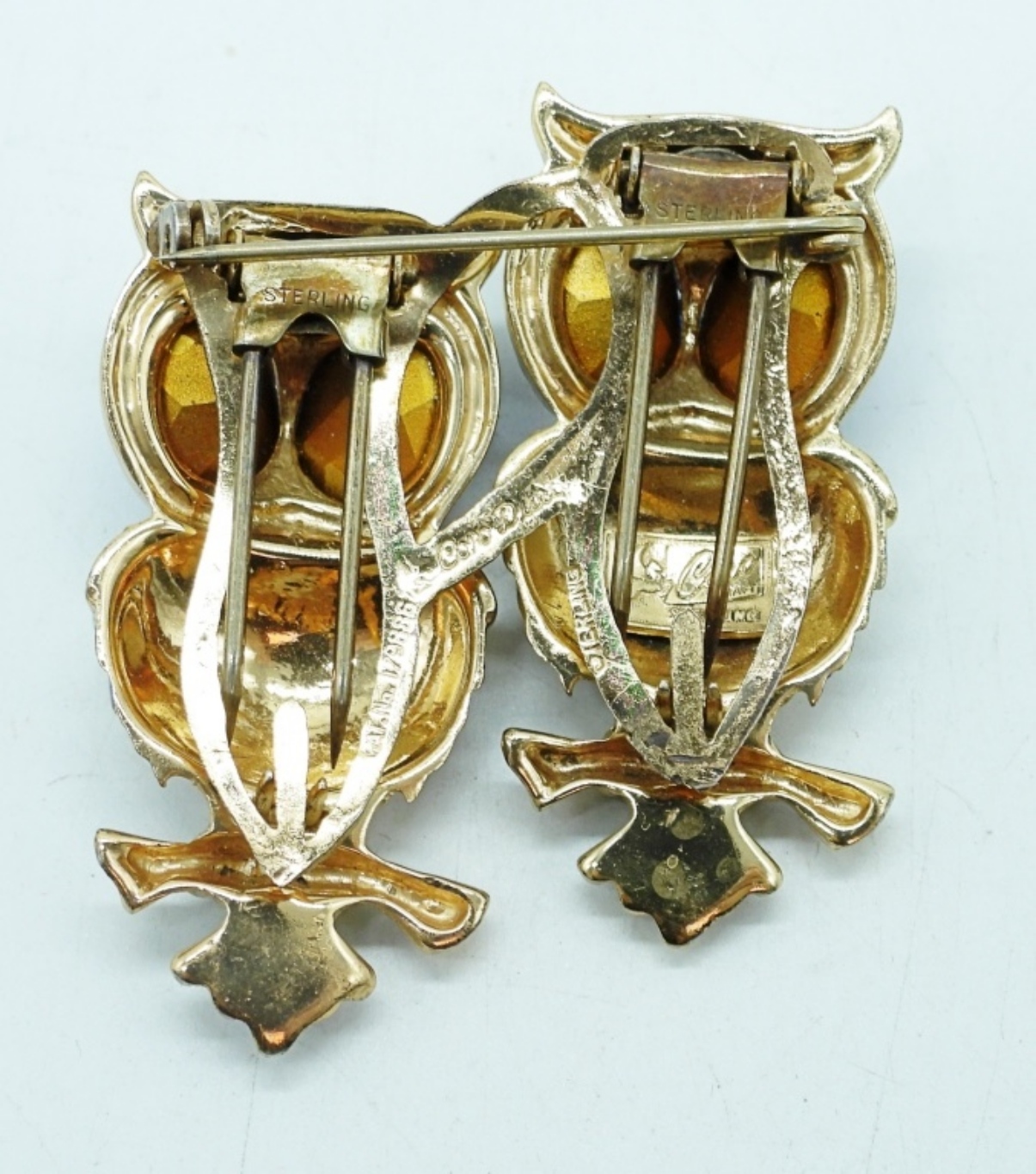 VERY COOL, VINTAGE GOLD TONE STERLING “CORO DUET”. EACH OWL DISCONNECTS FROM THE BROOCH AND IS A CLIP. 30.3 DWT