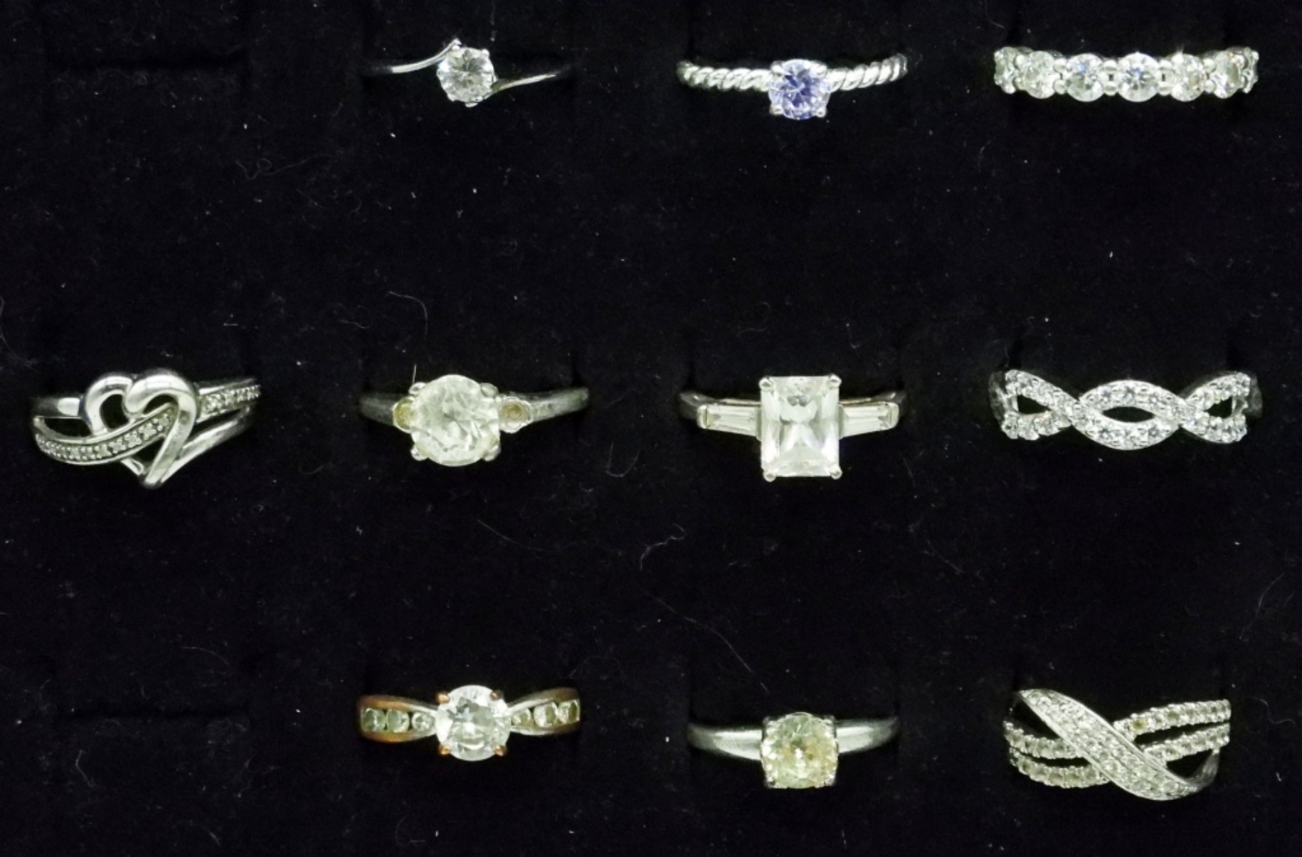 TEN BRIDAL STYLE STERLING RINGS. SIZES 6.5, 7, 8, 10. 19.2 DWT