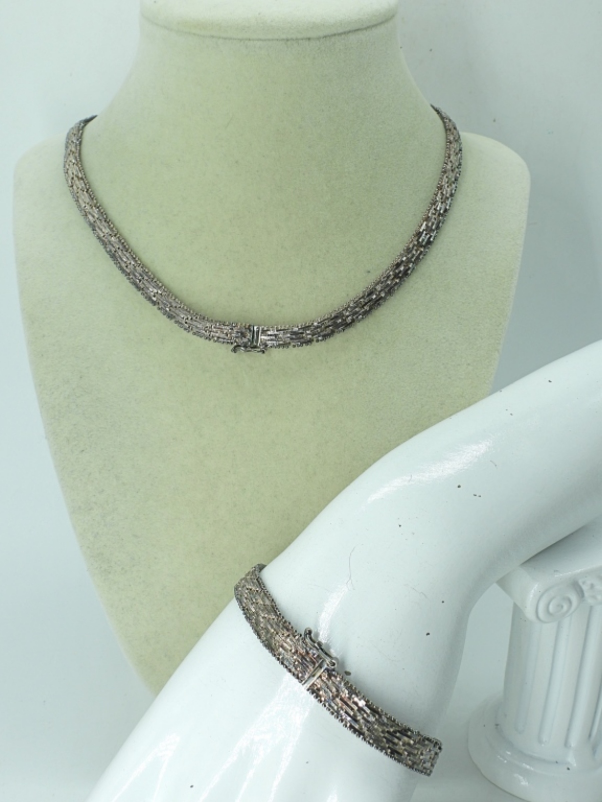 GORGEOUS DETAILED STERLING SILVER NECKLACE, 16″ & MATCHING BRACELET, 7″. 33.9 DWT