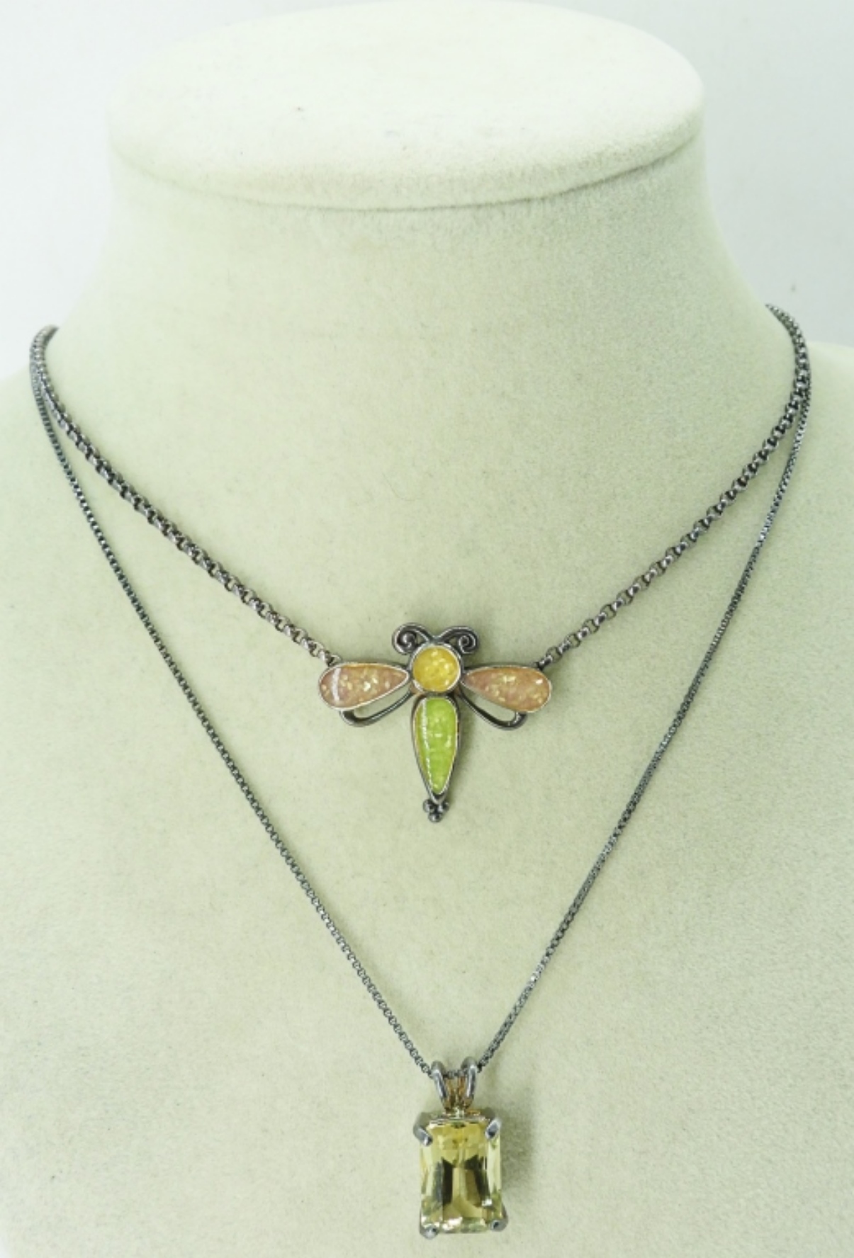 TWO STERLING (TARNISHED) FASHION NECKLACES. 16″ & 18″. 9.7 DWT