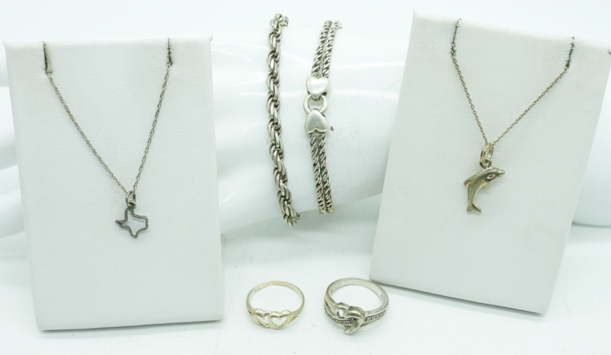 NECKLACES 18″ & 20″. BRACELETS 7″. TWO RINGS SIZES 6 & 7. 24.6 DWT