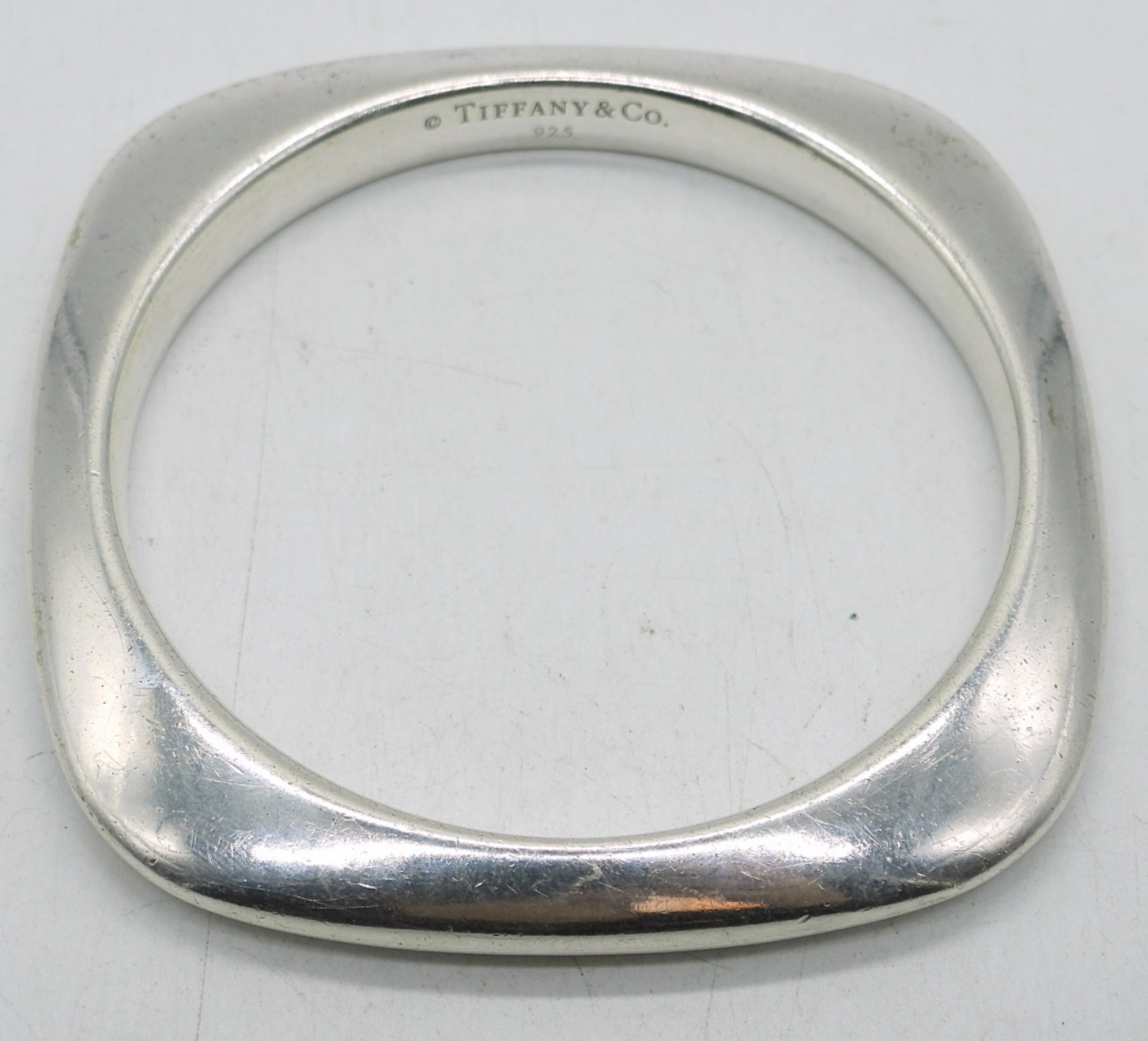 TIFFANY & CO 925 STERLING (TESTED) BANGLE BRACELET, OUTER SQUARE SHAPE. 34.8 DWT