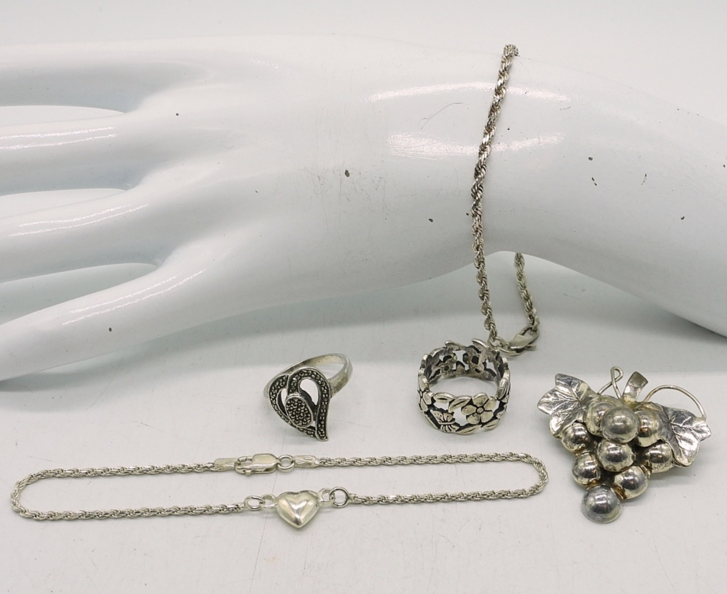 VTG GRAPES 925 BROOCH, RINGS, BRACELETS
