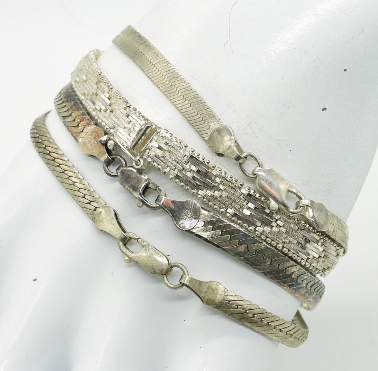 FOUR STERLING CHAIN BRACELETS. 7″. 22.2DWT