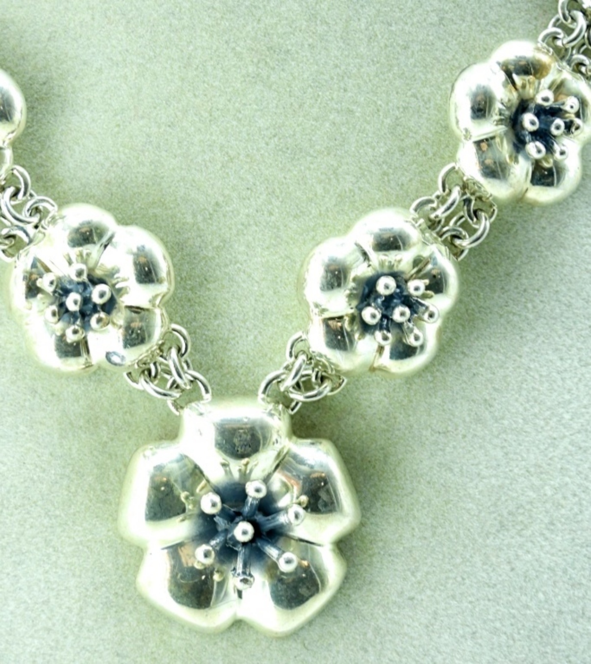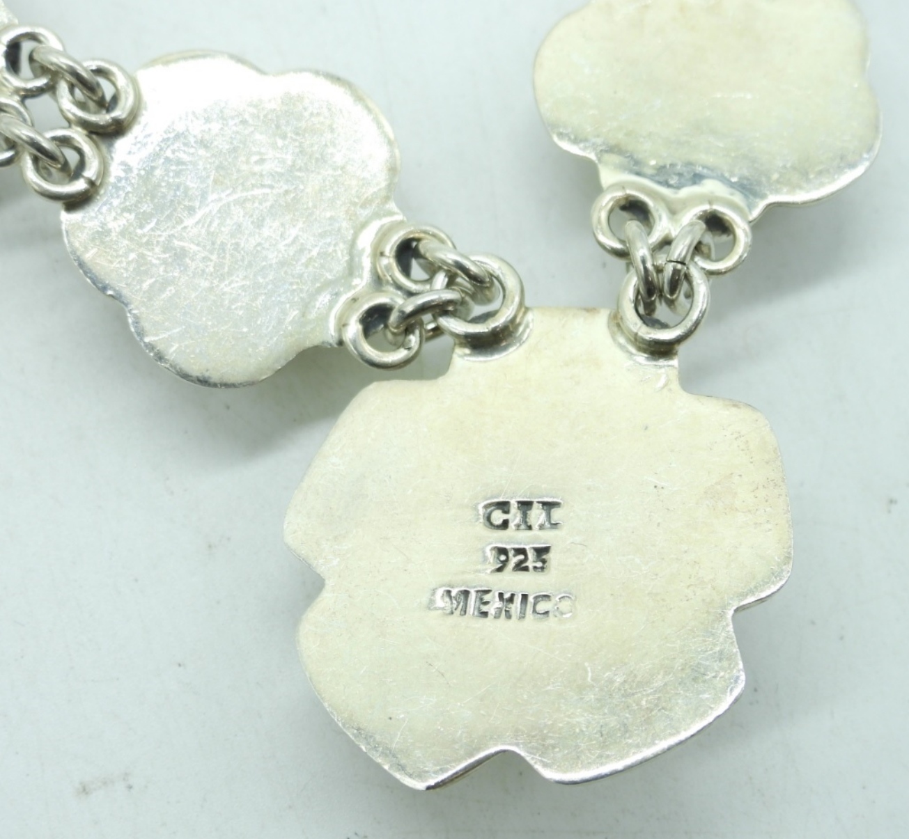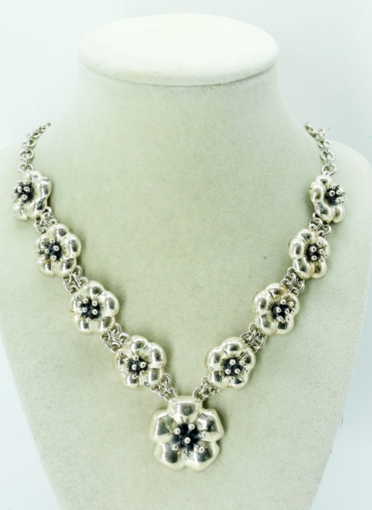 MEXICAN STERLING HIBISCUS NECKLACE. MARKED 925 MEXICO, 20″. 46.4 DWT