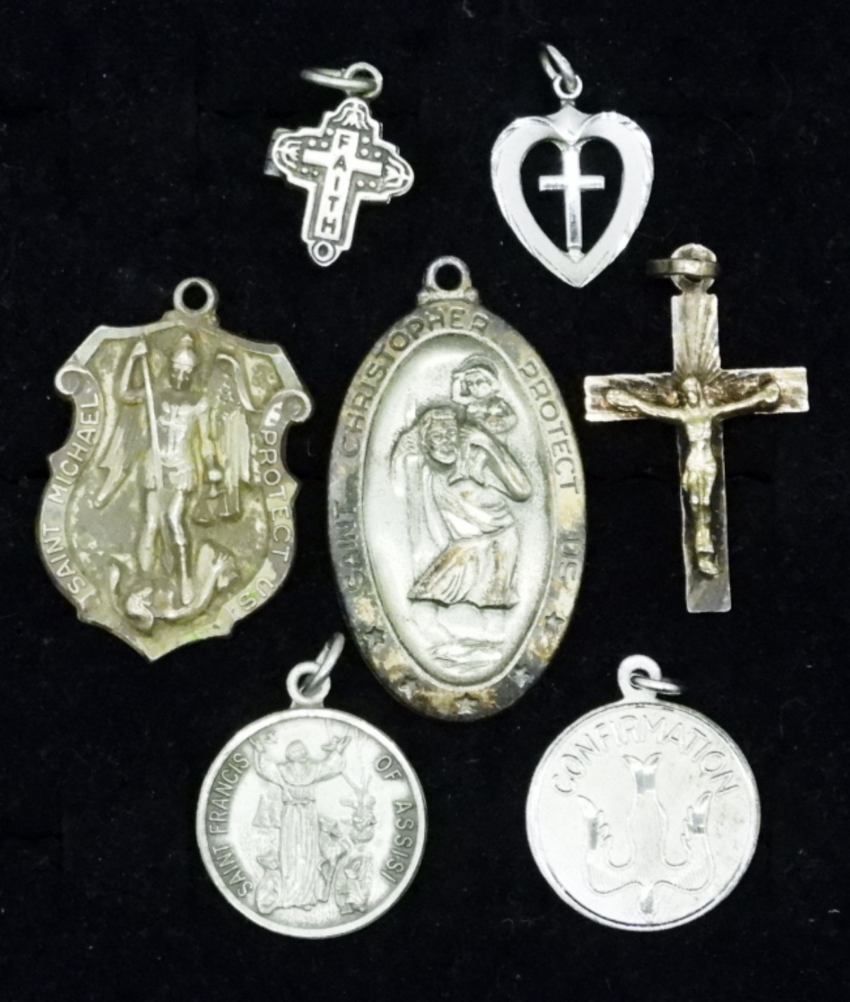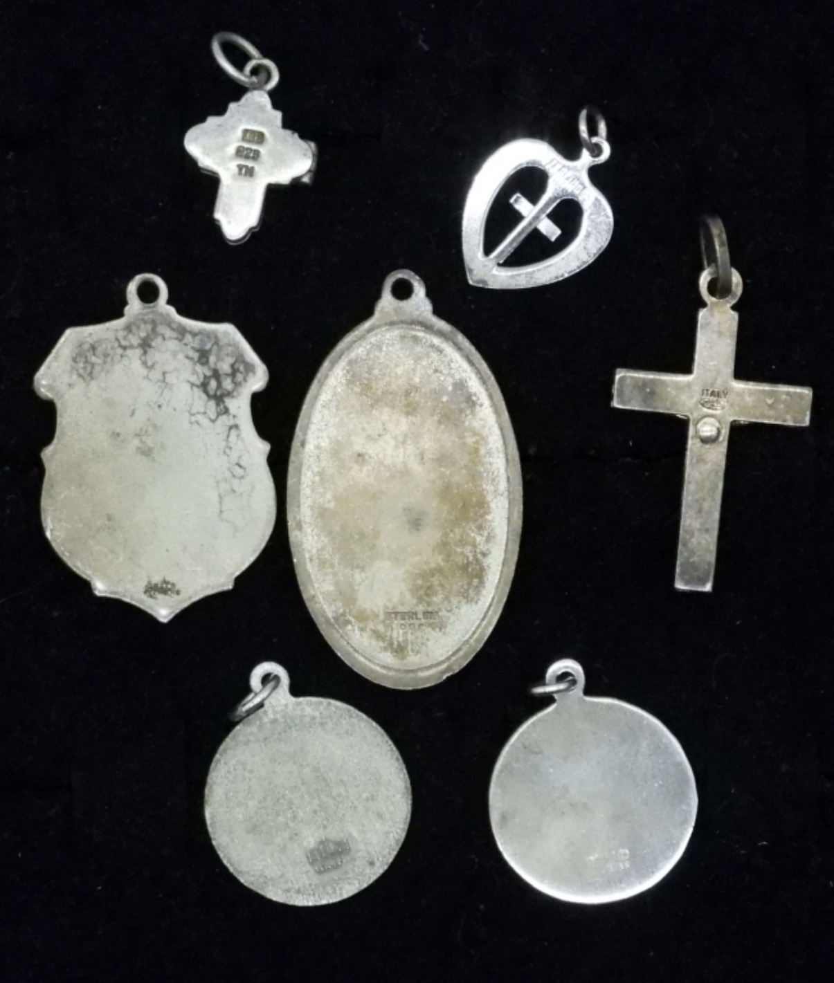 SEVEN STERLING CHRISTIAN PENDANTS. RELIGIOUS. 18.7 DWT
