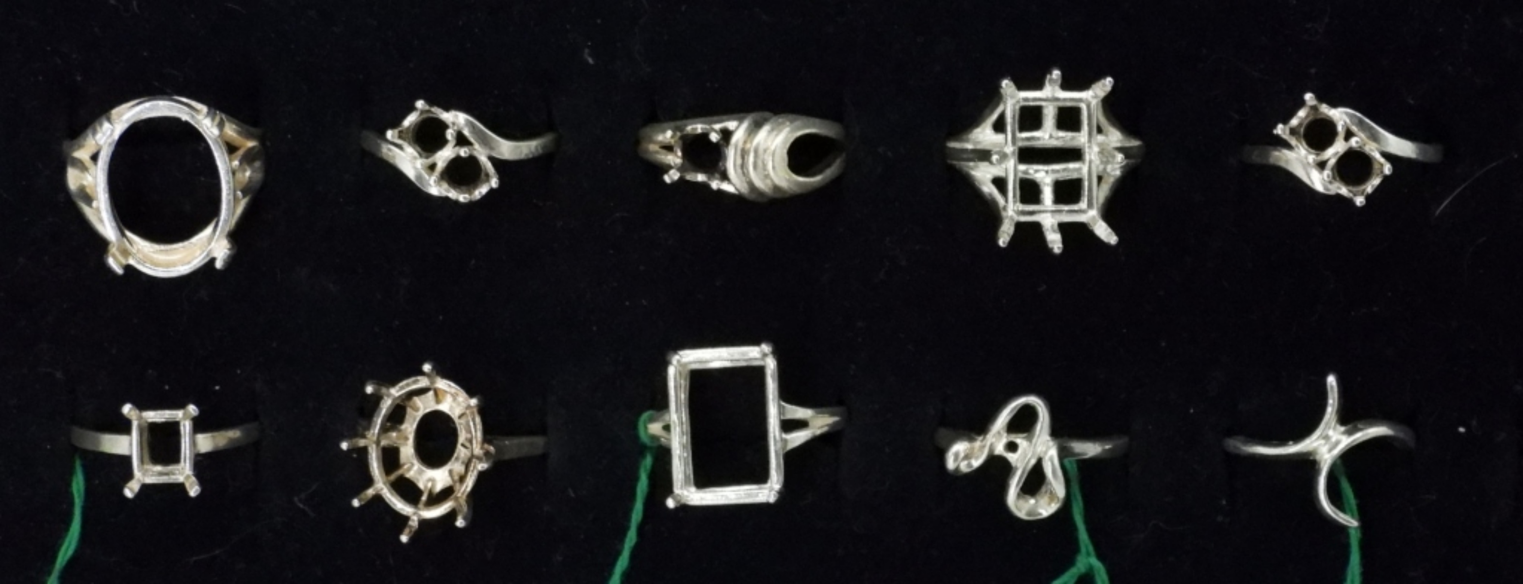 TEN STERLING RINGS, EMPTY SETTINGS. GREAT FOR JEWELERS & CRAFTERS. SIZES 6-8. 19.7 DWT