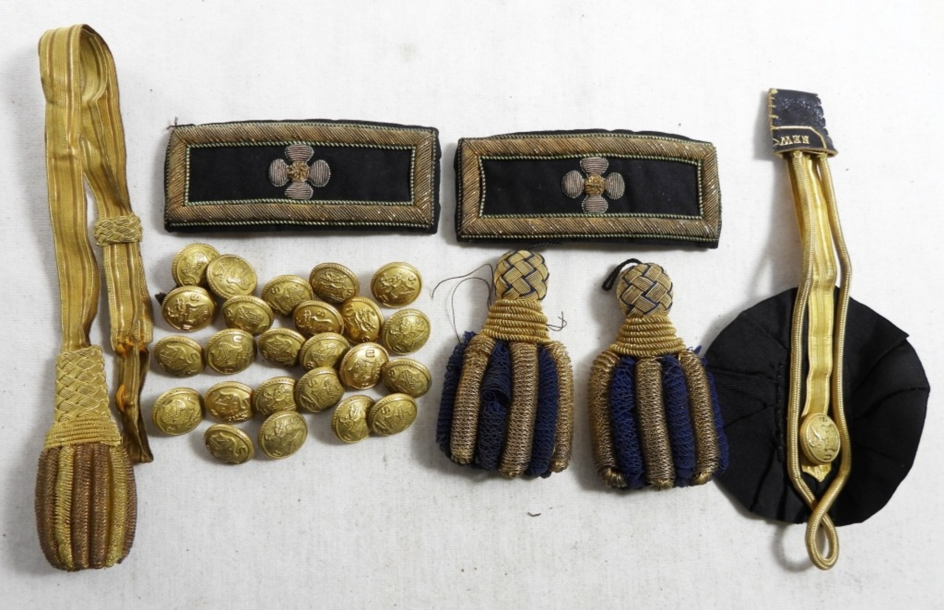 WITH WIRE CORDING / SHOULDER STRAPS & LARGE AMOUNT OF UNIFORM BUTTONS – NICE LOT