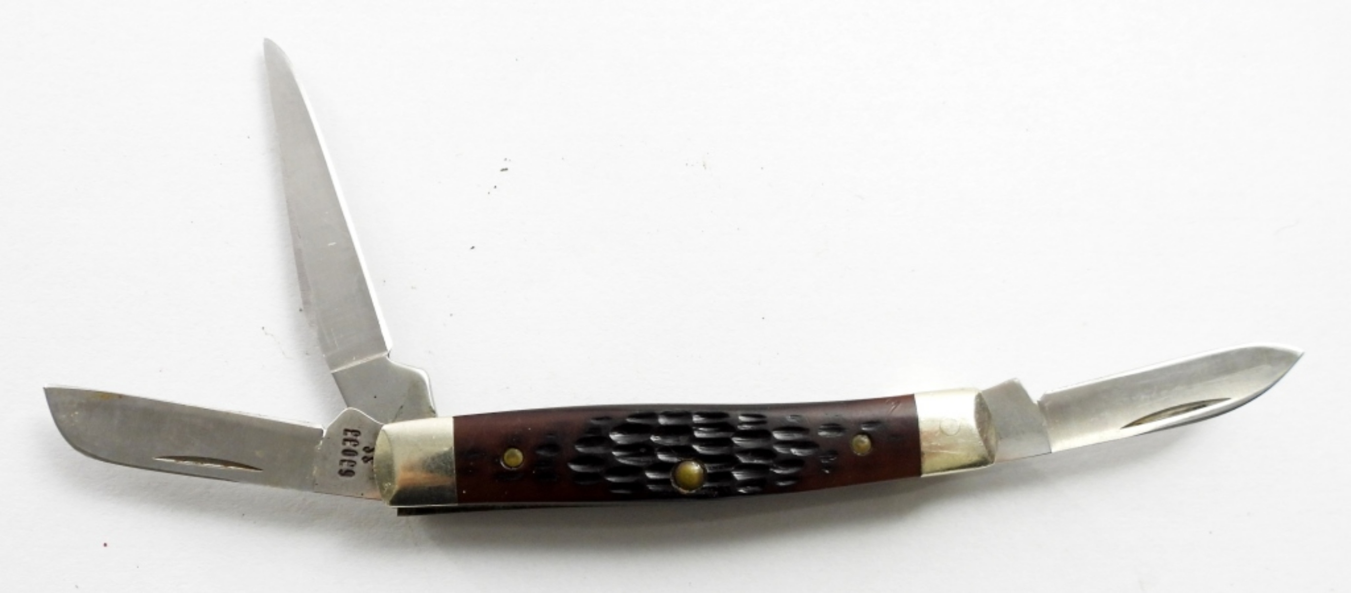 VINTAGE CASE XX (63033) 3 BLADE SM ALL STOCKMAN POCKET KNIFE WITH A JIGGED HANDLE