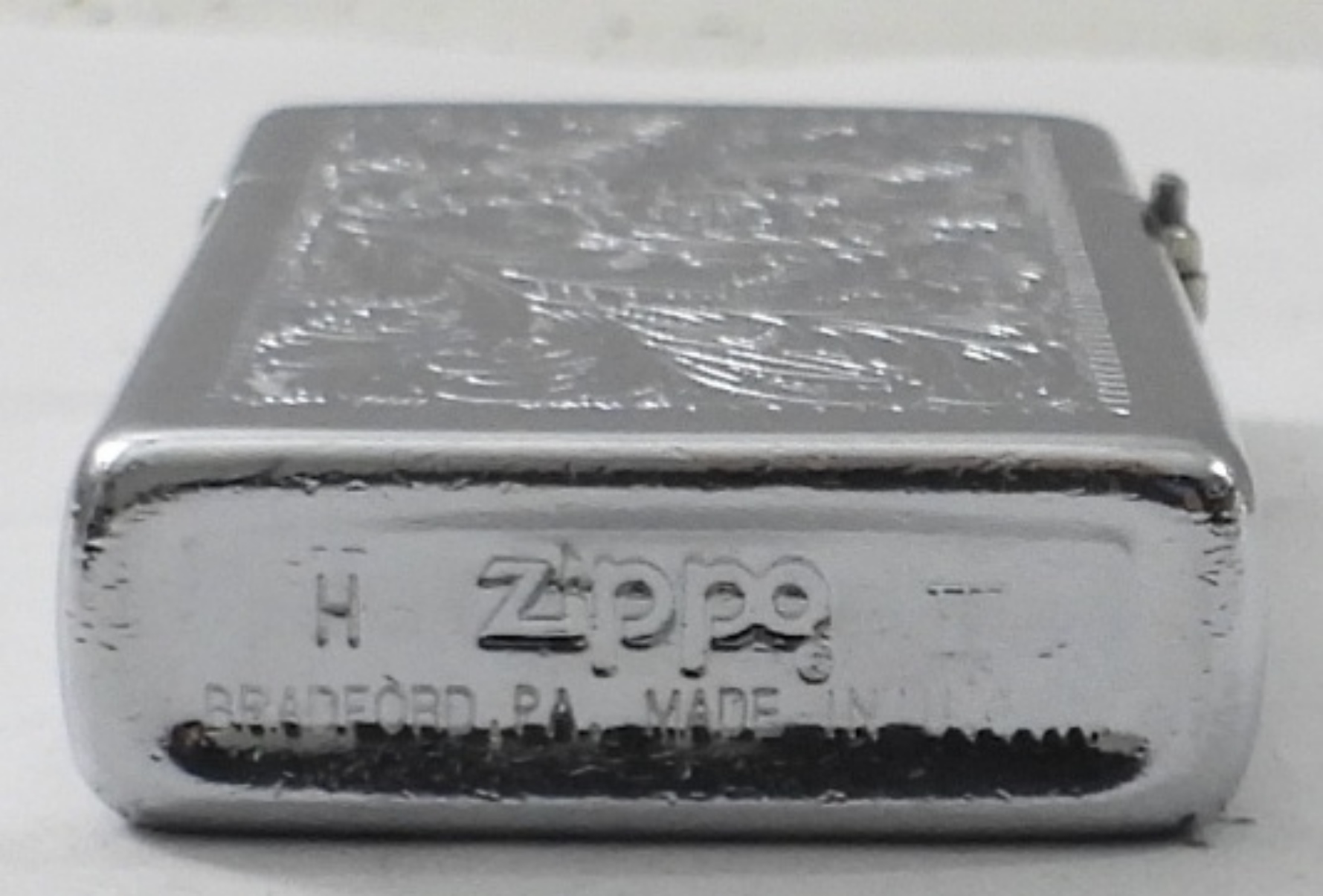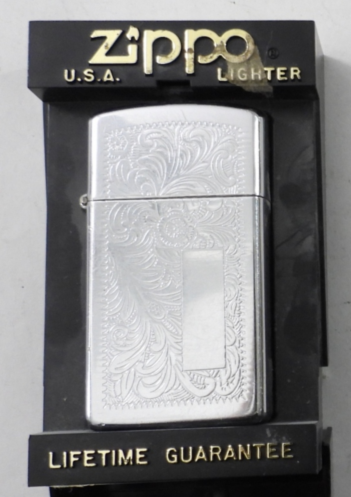 1991 FIRED SLIM CHROME VENETIAN ZIPPO LIGHTER IN ORIGINAL BOX. MODEL #1652