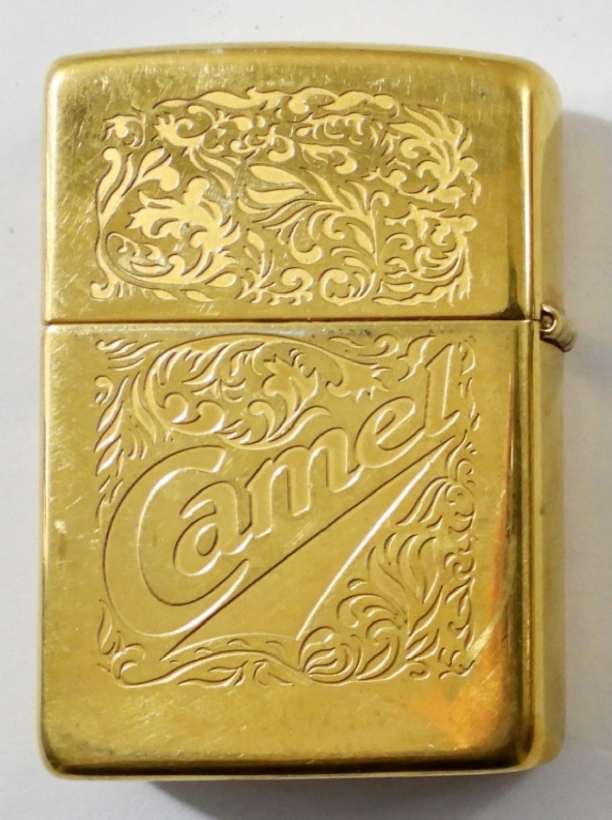 1996 FIRED GOLD PLATED CAMEL DOUBLE SIDED ZIPPO LIGHTER IN BOX