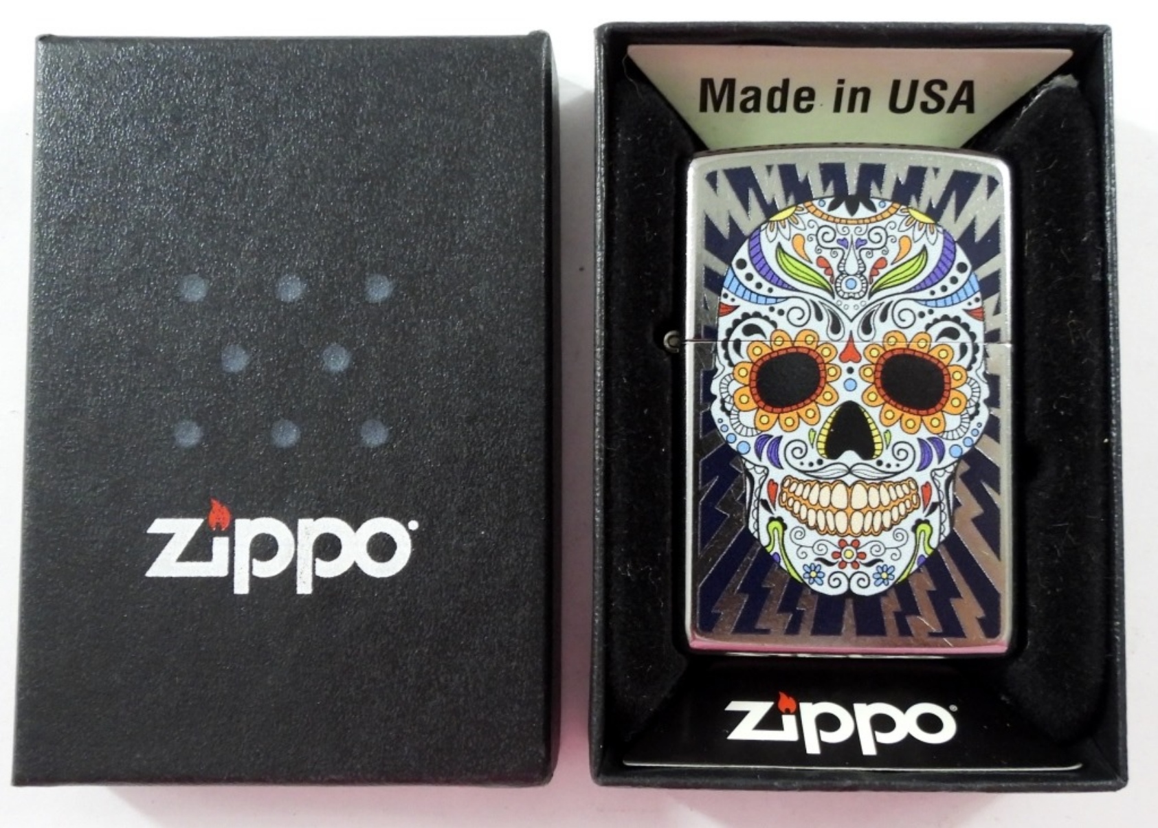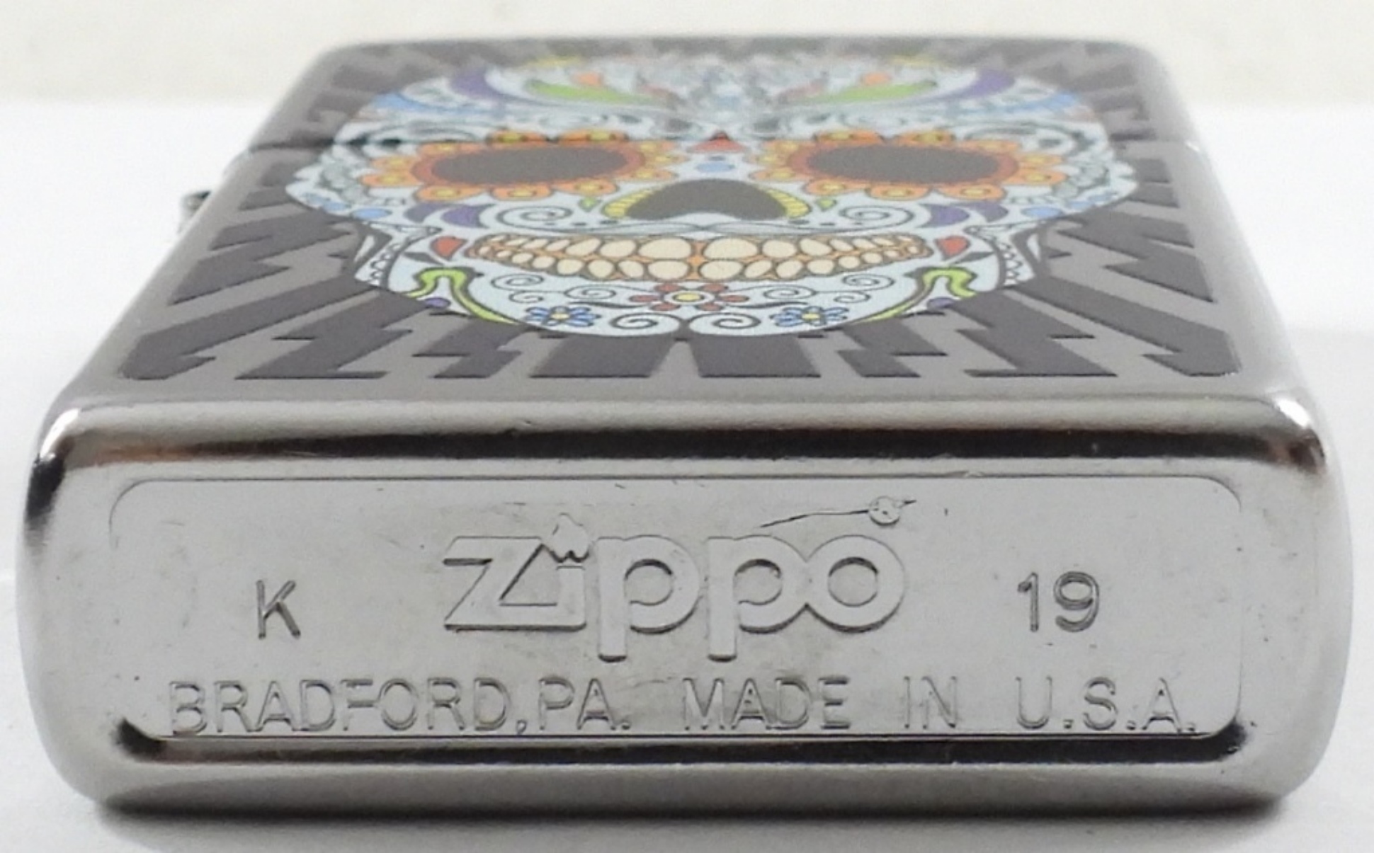 2019 UNFIREDSUGAR SKULL STREET CHROME ZIPPO LIGHTER IN A BOX