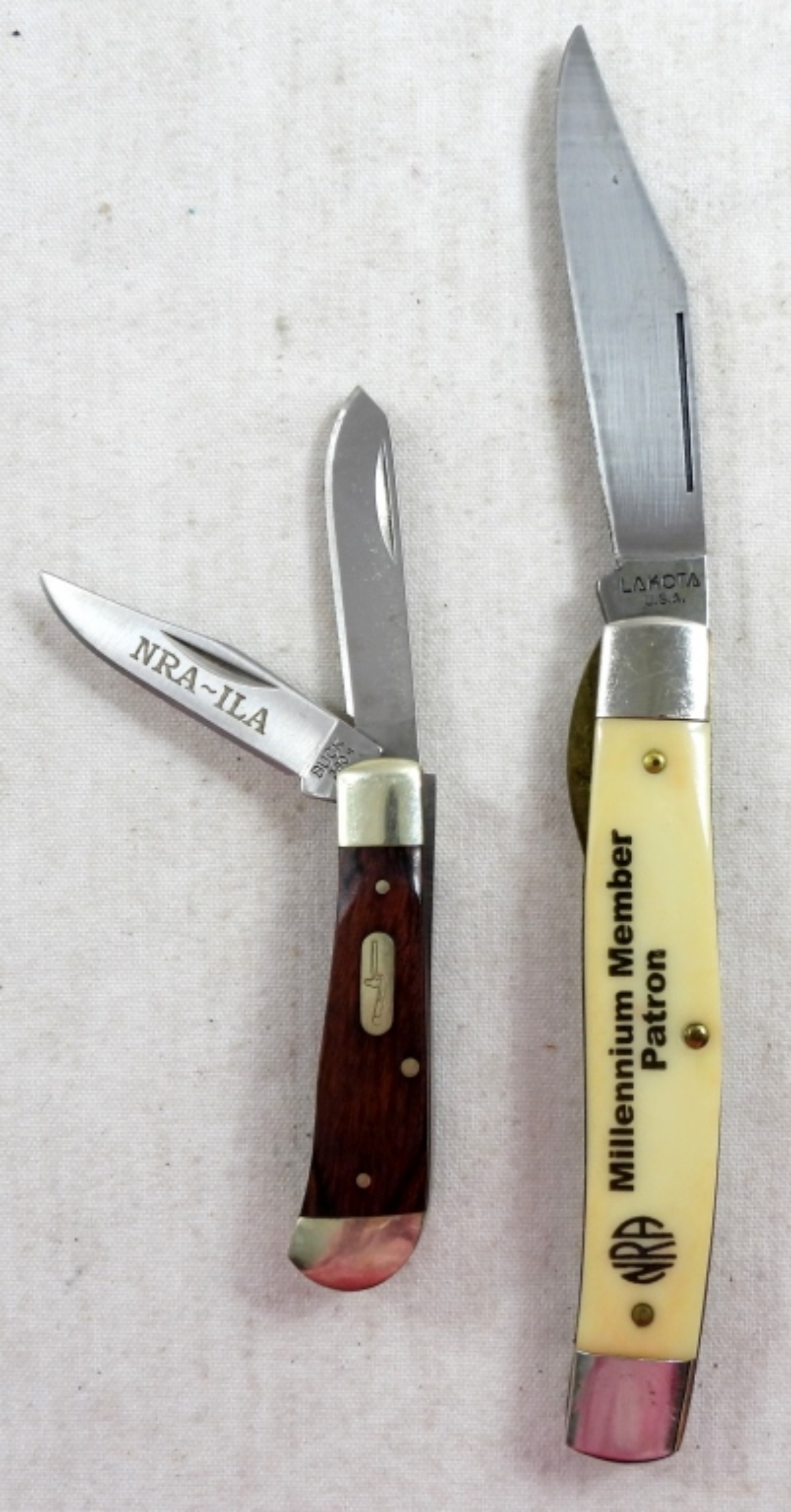 LAKOTA SINGLE BLADE & NRA -ILA BUCK 380 TWO BLADE – BOTH LIKE NEW