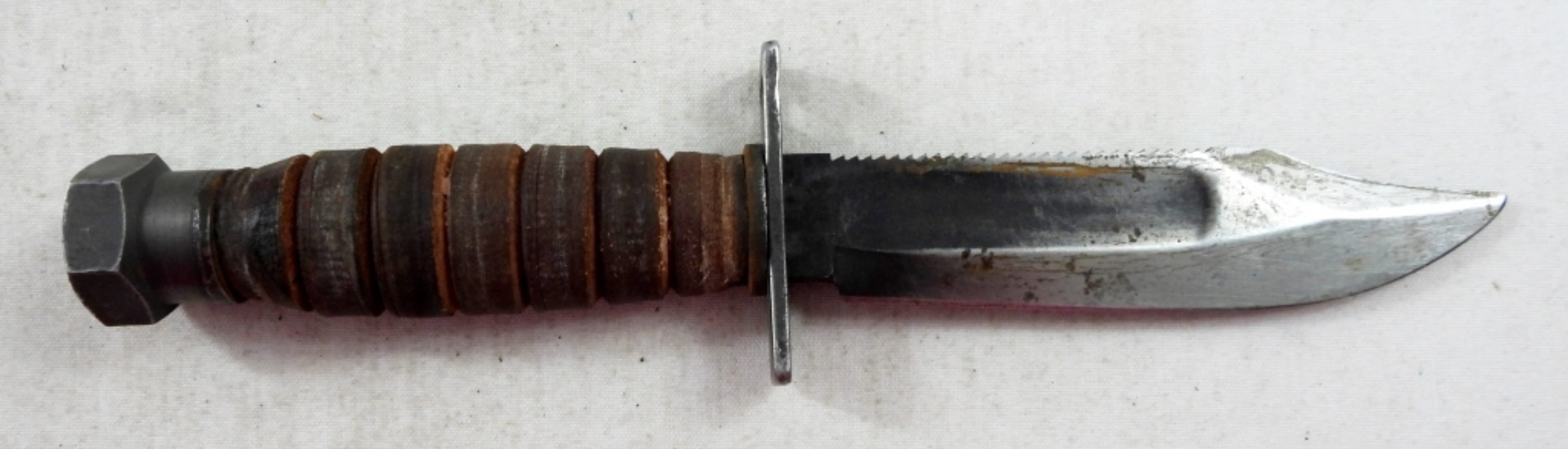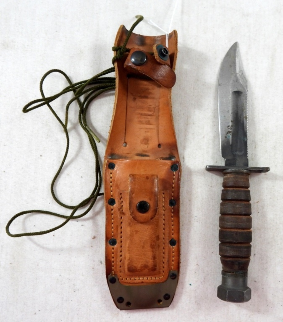 LEATHER WRAPPED HANDLE w/SHEATH / PILOT SURVIVAL KNIFE – USED