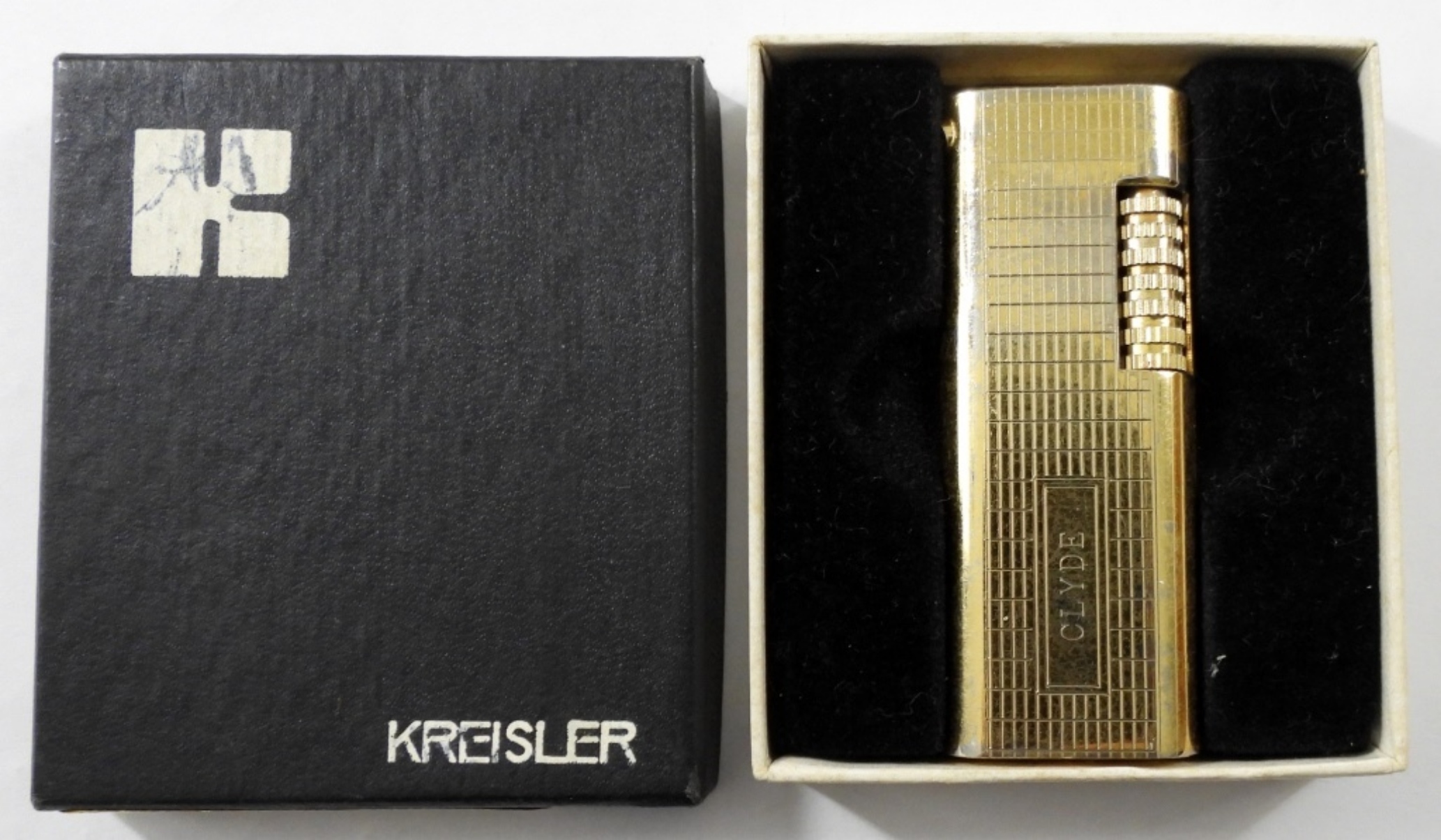 VINTAGE GOLD TONE KREISLER BUTANE LIGHTER IN ORIGINAL BOX