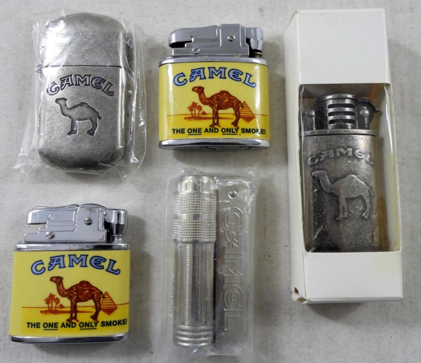 (5) ASSORTED CAMEL LIGHTER LOT, ALL DIFFERENT STYLES AND COLORS