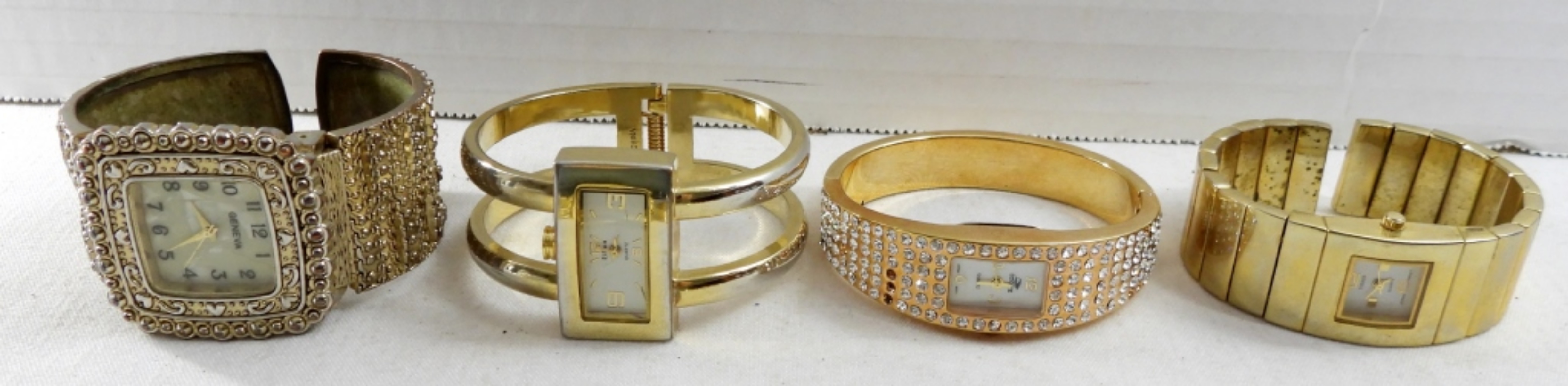 (8) LADIES FASHION GOLD TONE CUFF WATCH BRACELETS ,QUARTZ,GENEVA& MORE.(NOT TESTED AS TO WORKING OR NOT )