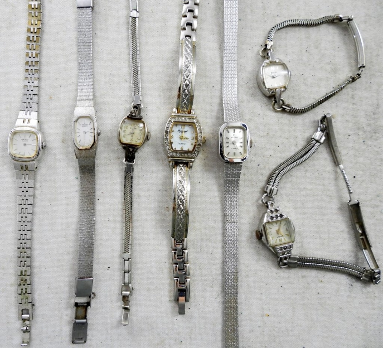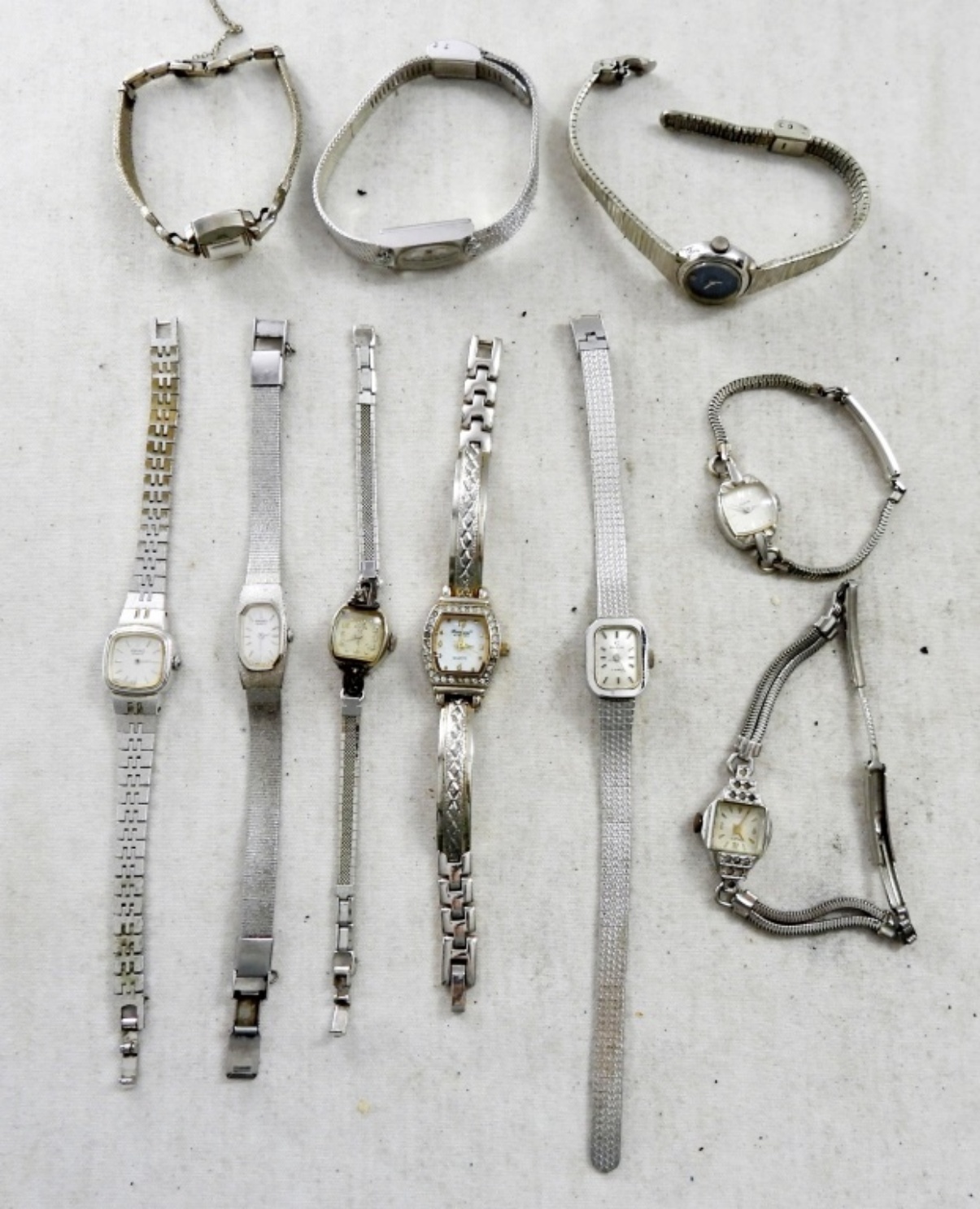 (10) LADIES SILVER TONE CLASP BAND WATCHES, WALTHAM,ELGIN, BULOVA& MORE(NOT TESTED AS TO WORKING OR NOT )