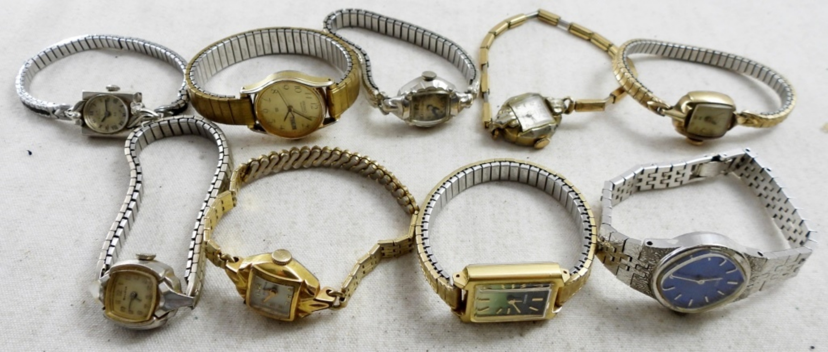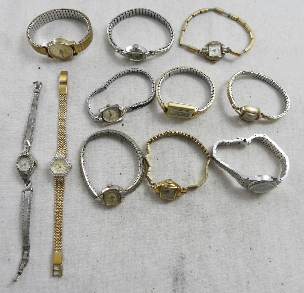 (11) SMALL FASHION LADIES WATCHES, GENEVA,ELGIN,BULOVA & MORE. (5) SOLVER TONE (6) GOLD TONE ASSORTED BANDS (NOT TESTED AS TO WORKING OR NOT )