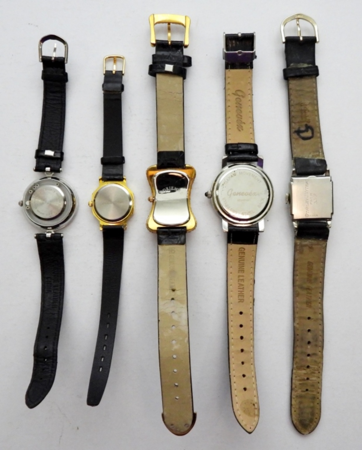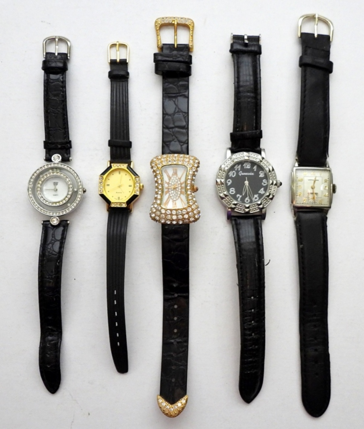 LEATHER BANDS & CRYSTALS, SILVER & GOLD TONE