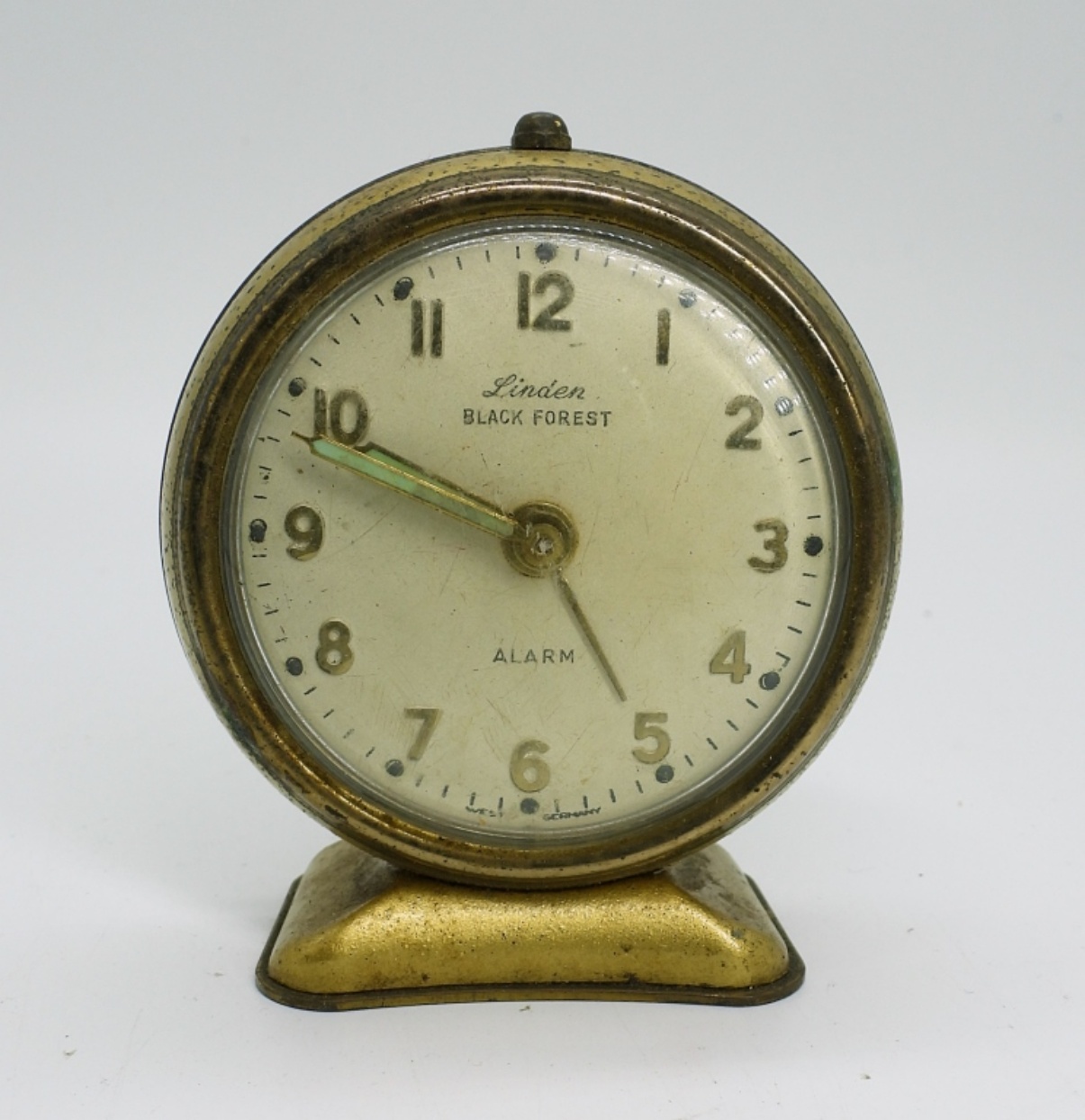 GOLD TONE LINDEN BLACK FOREST TRAVEL ALARM CLOCK. IT’S TICKING, DON’T KNOW IF IT’S KEEPING TIME. (NOT TESTED AS TO WORKING OR NOT)
