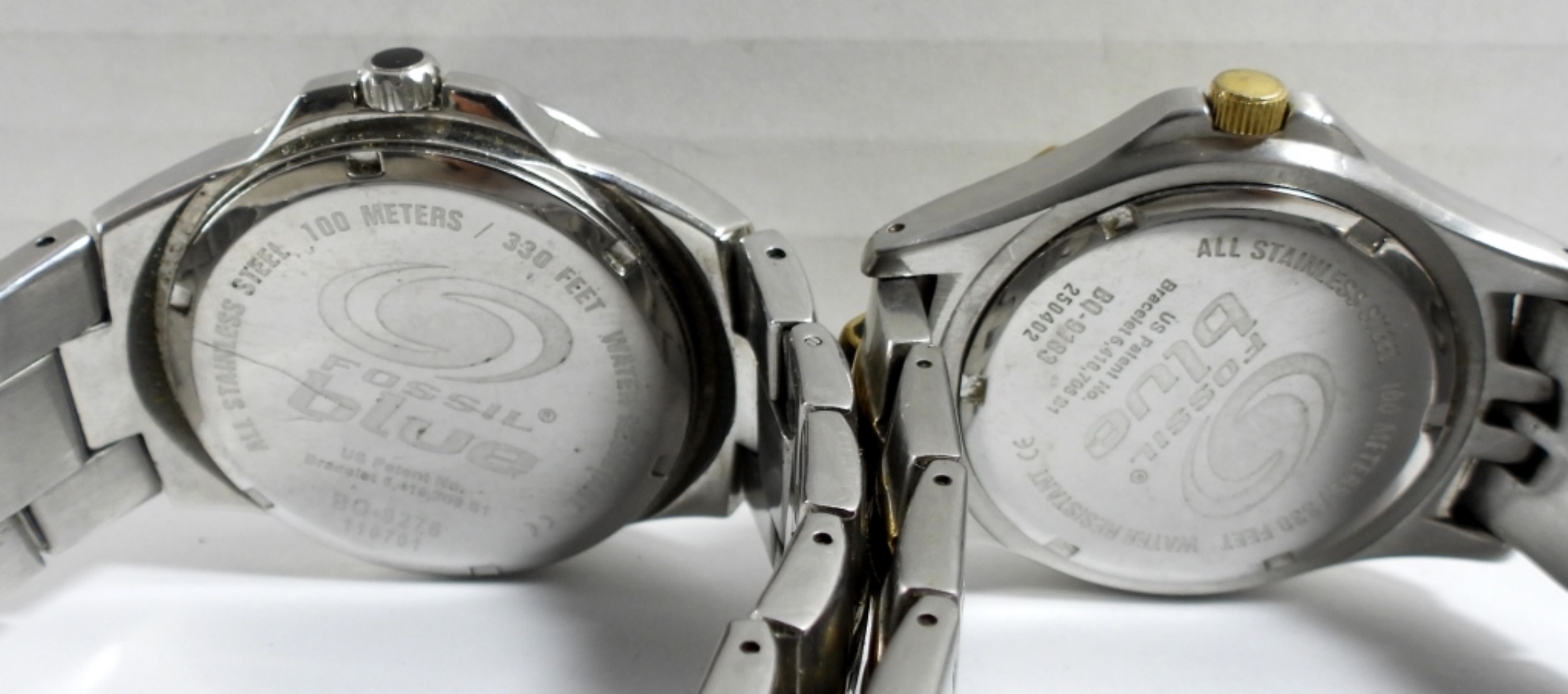 (2) MEN’S FOSSIL CHRONOGRAPH WATCHES. BOTH SILVER TONE ( NOT TESTED AS TO WORKING OR NOT)