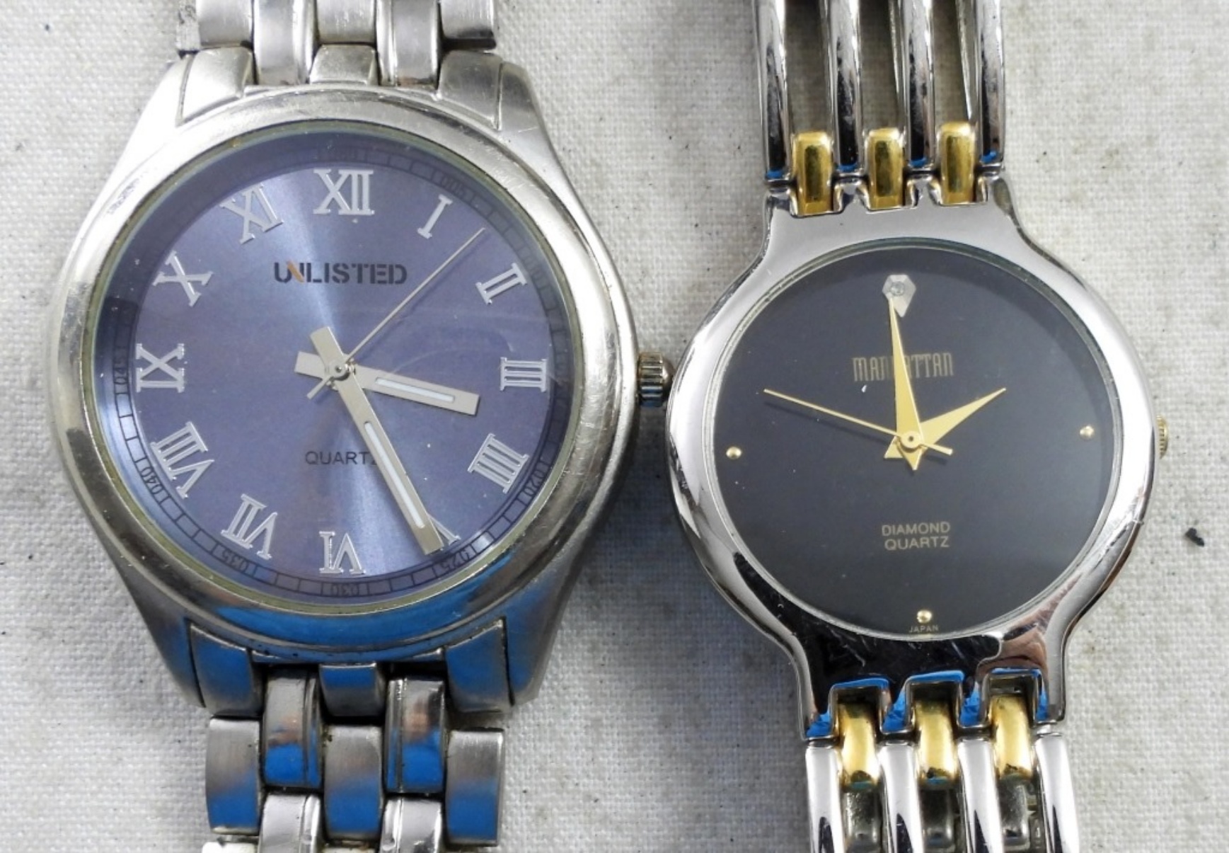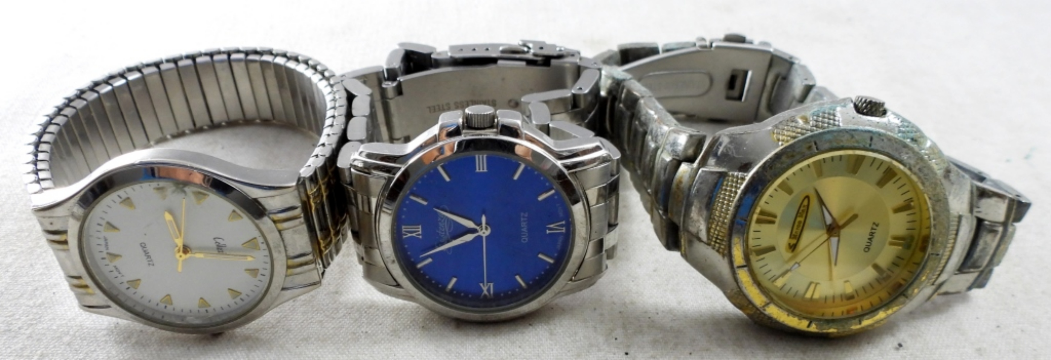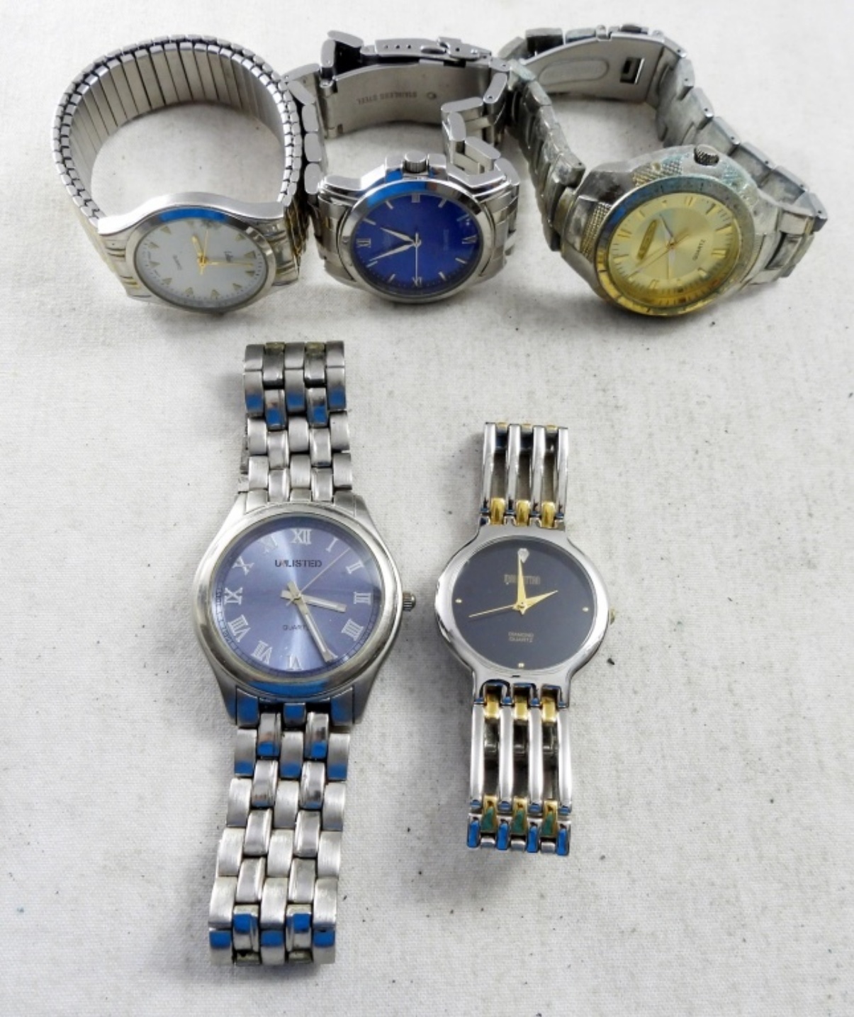 (5) MEN’S QUARTZ WATCHES .4 CLASP BANDS 1 STRETCHY BAND ( NOT TESTED AS TO WORKING OR NOT)