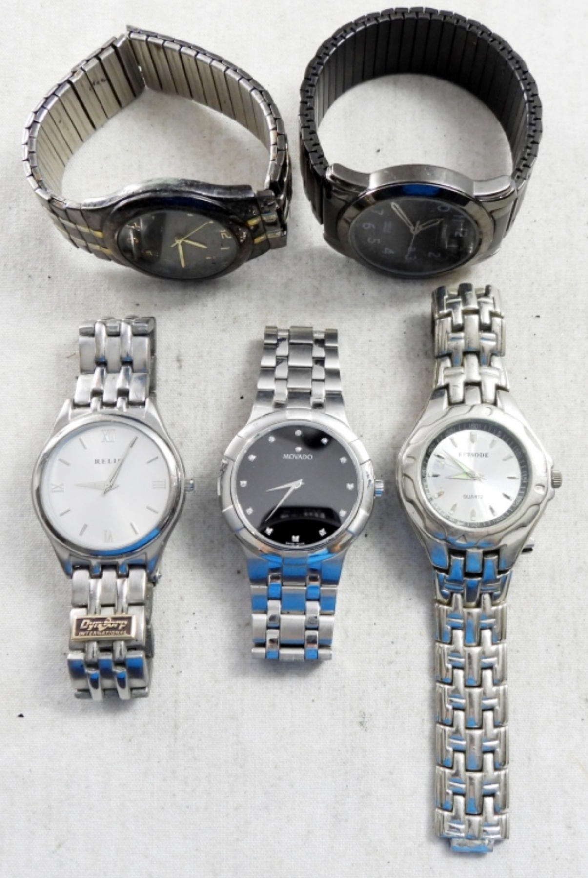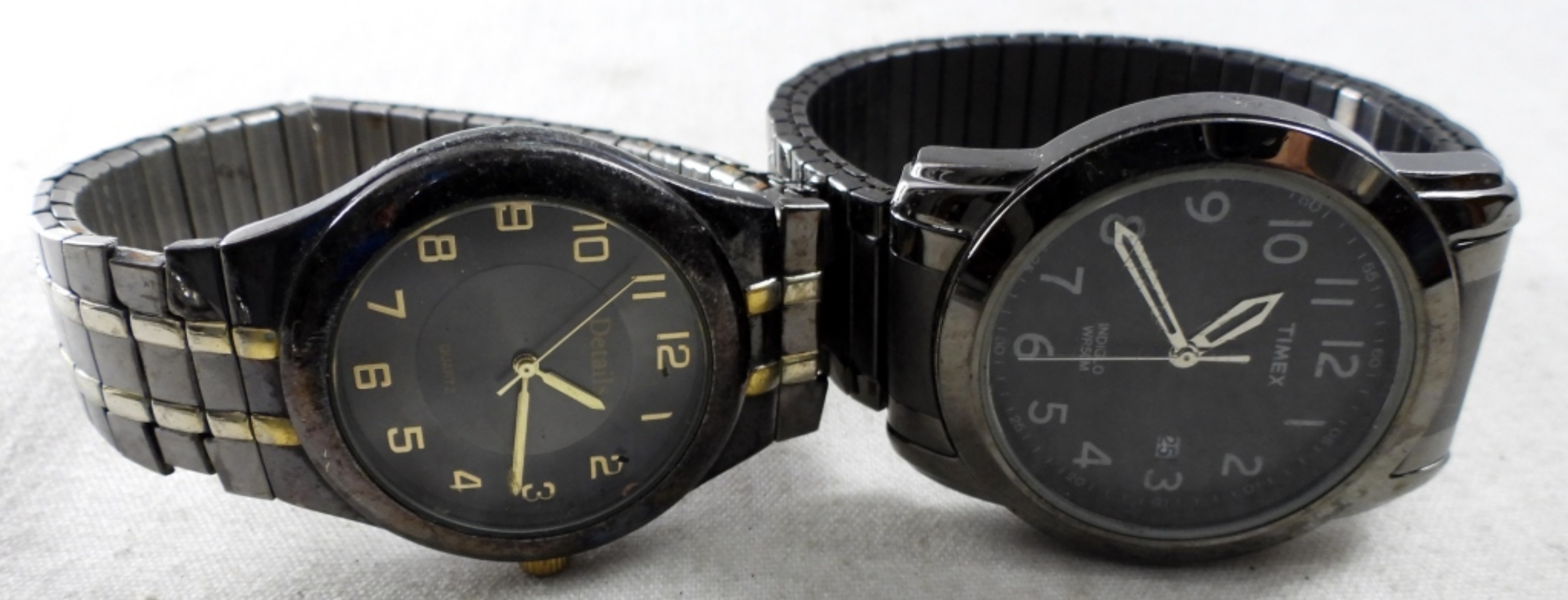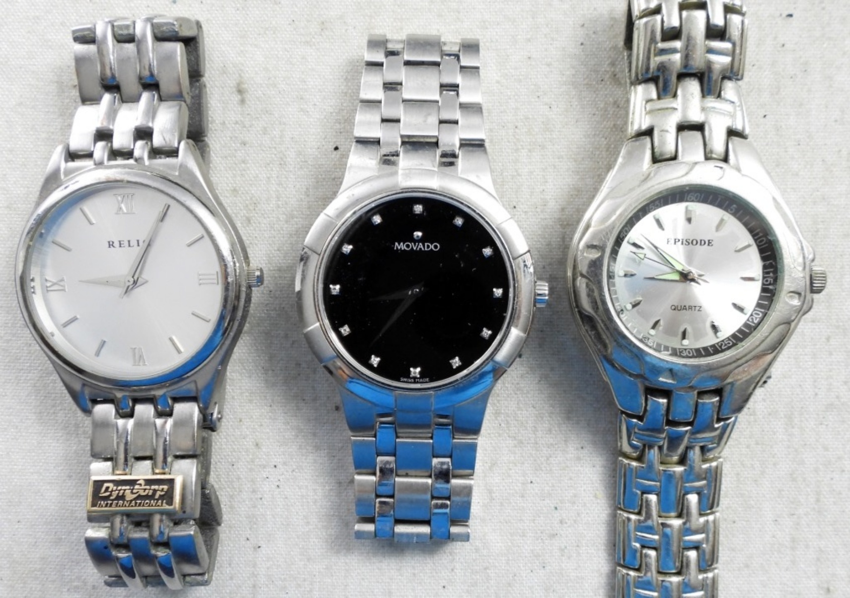(3) MENS CLASP BAND WATCHES . ALL 3 SILVER TONE AND 2 BLACK STRETCHY BAND WATCHES /TIMEX ,QUARTZ & MORE( NOT TESTED AS TO WORKING OR NOT)