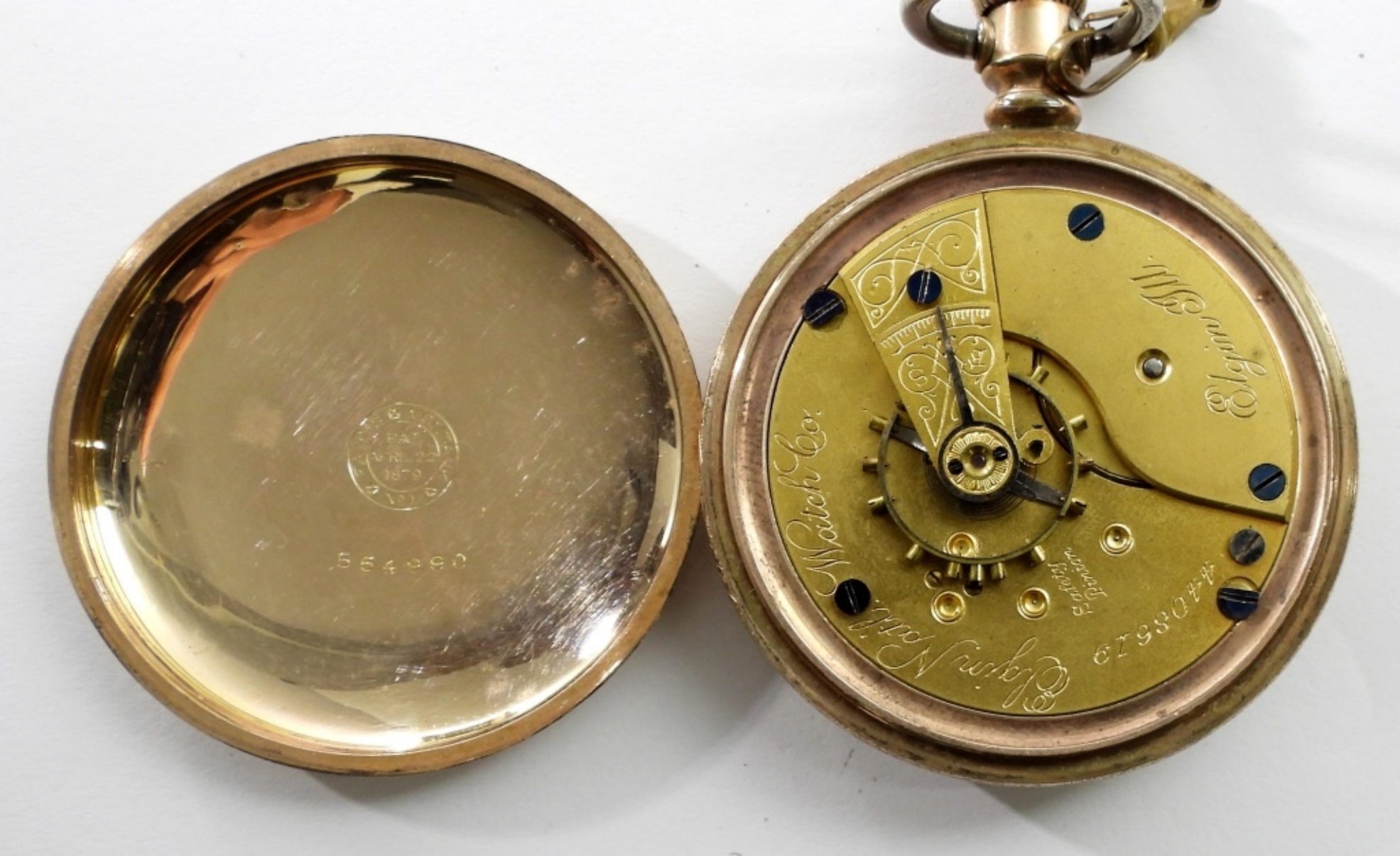 1891 ELGIN 18 SIZE OPEN FACE POCKET WATCH,# 4408619, 7 JEWELS, GRADE 73, NOT RUNNING MAY NEED SERVICE OR REPAIR