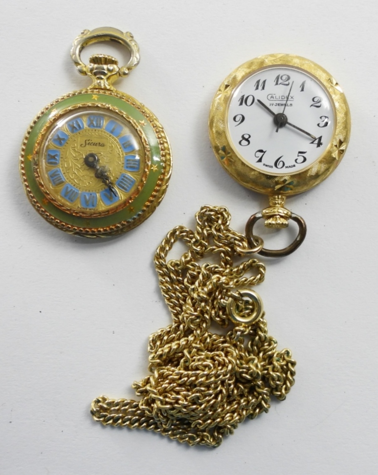 (1) RUNNING CALIDEX 17j (1) SICURA ENAMEL not running – BOTH MISSING BACKS!