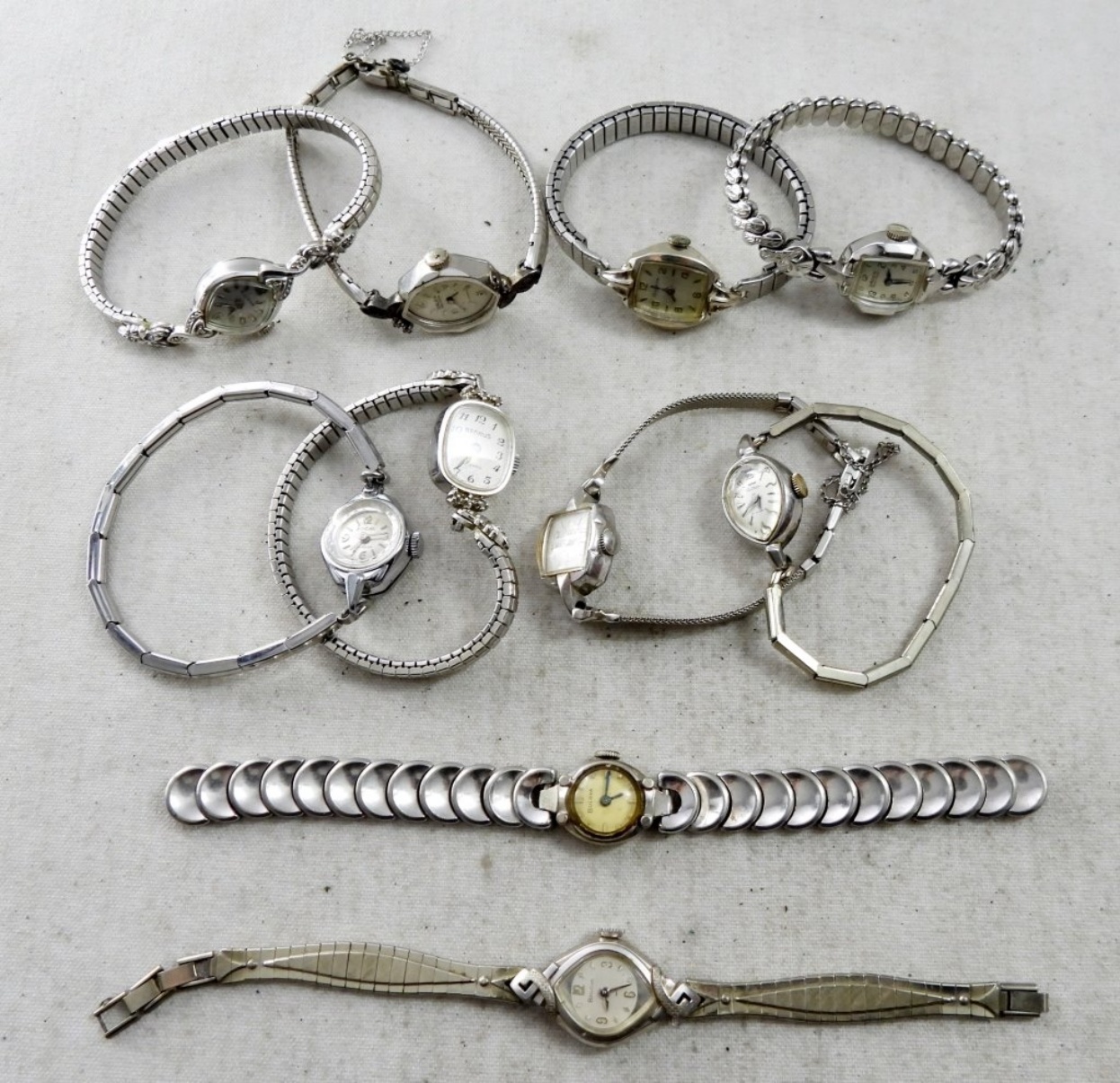 NOT TESTED, 1 STRAP IS BROKEN FOR REPAIR, SOME BRANDS IN THIS LOT POCAL, BULOVA, WALTHAM, GRUEN, ELGIN, BENRUS