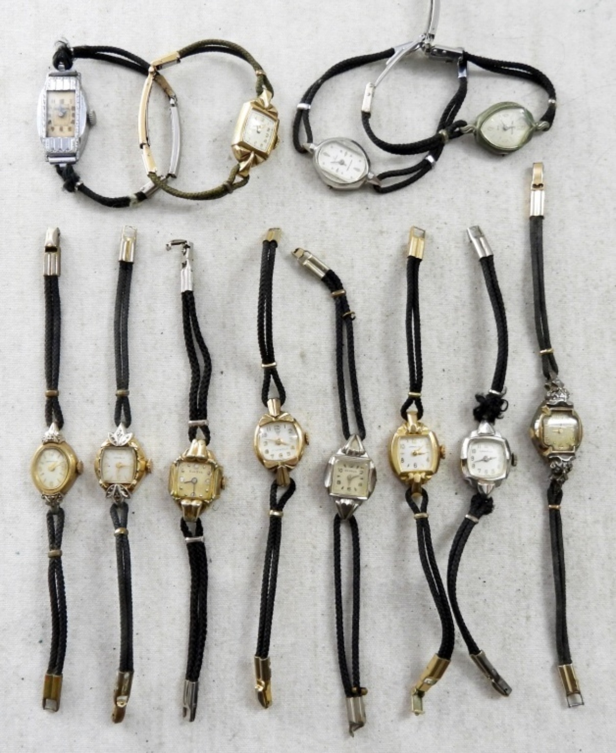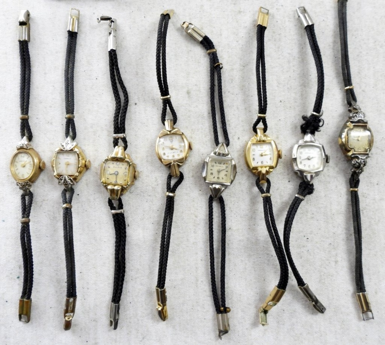 NOT TESTED, SOME BRANDS IN THIS LOT BULOVA, GRUEN, CARAVELLE, HELZBROS, WALTHAM, ELGIN