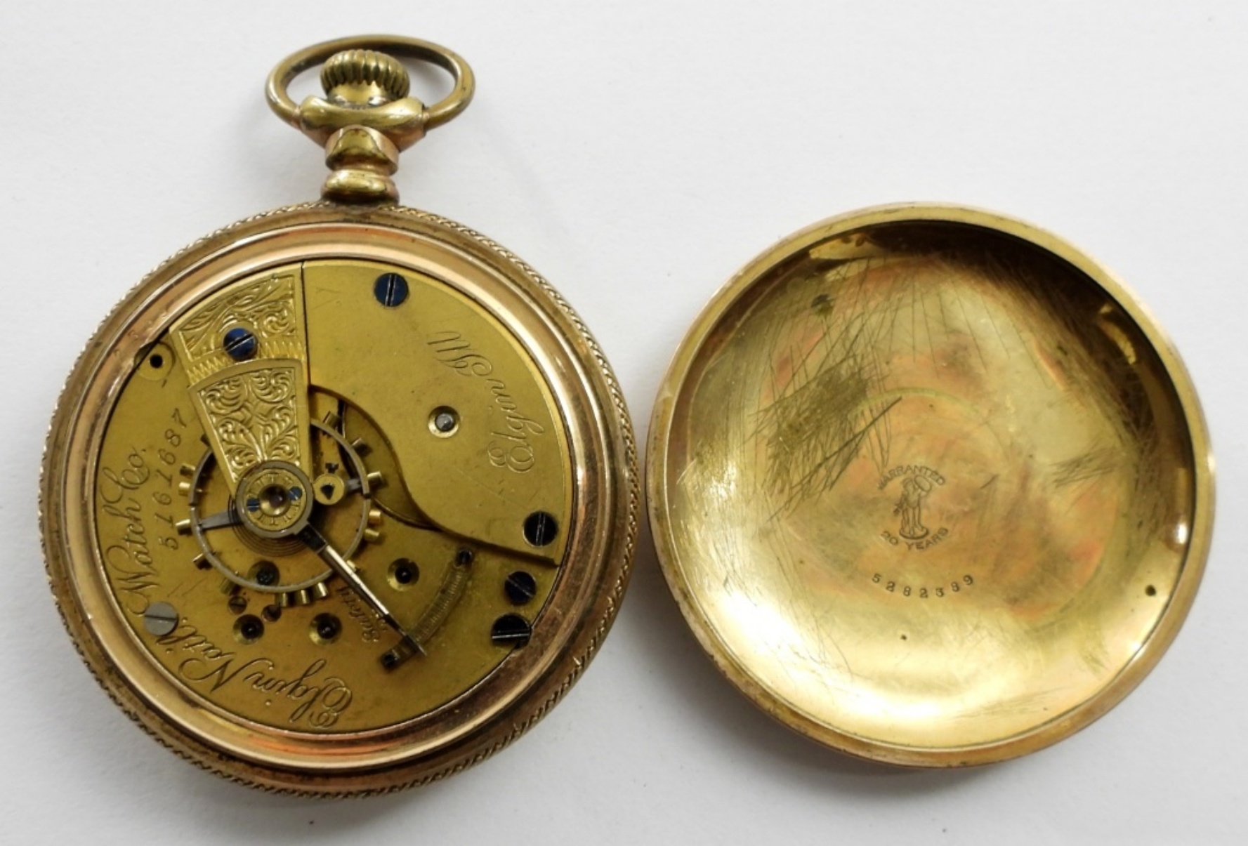 1894 ELGIN 18 SIZE OPEN FACE POCKET WATCH,# 5161687, 11 JEWEL,GRADE 74 GOLD TONE POCKET WATCH ( NOT WORKING ) MAY NEED SERVICE OR REPAIR
