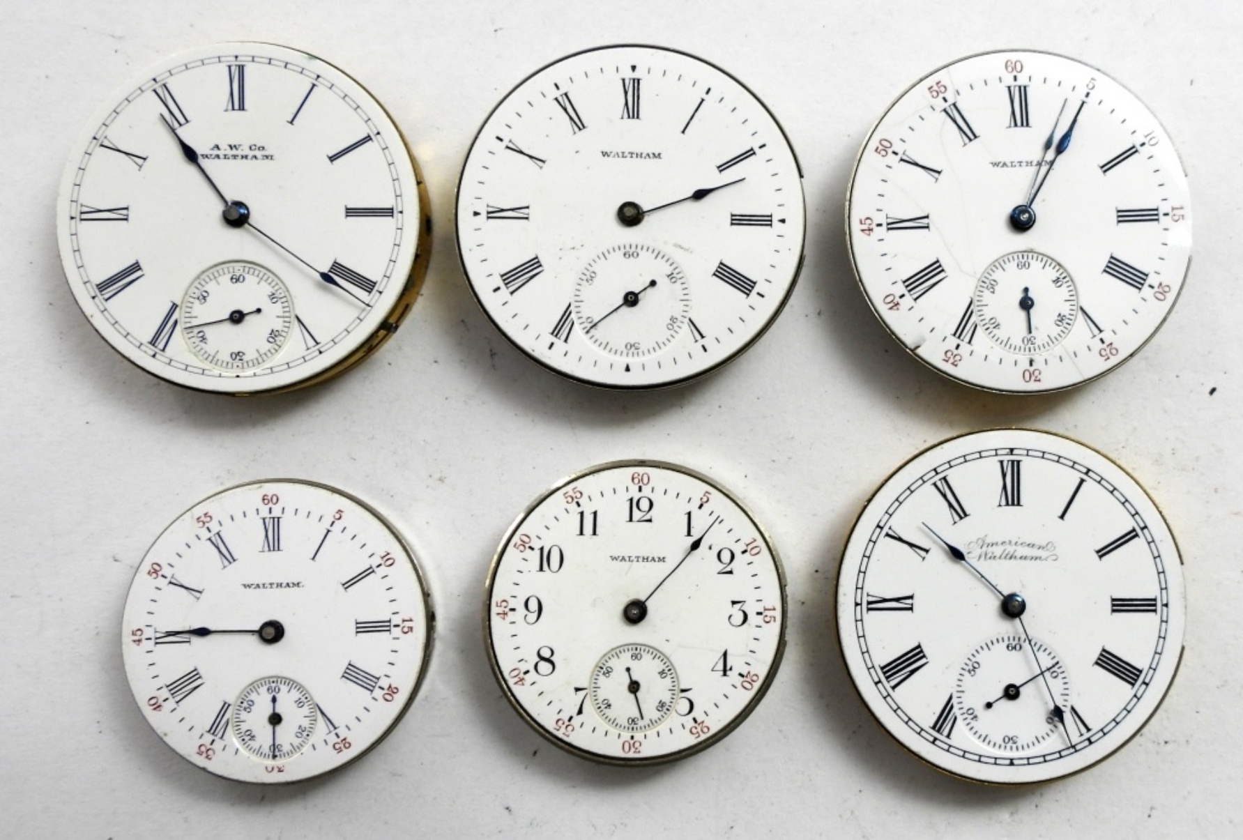 FOR PARTS AND REPAIR, ALL WALTHAM, ONE MARKED AMERICAN WALTHAM, AND ONE MARKED A.W. CO WALTHAM