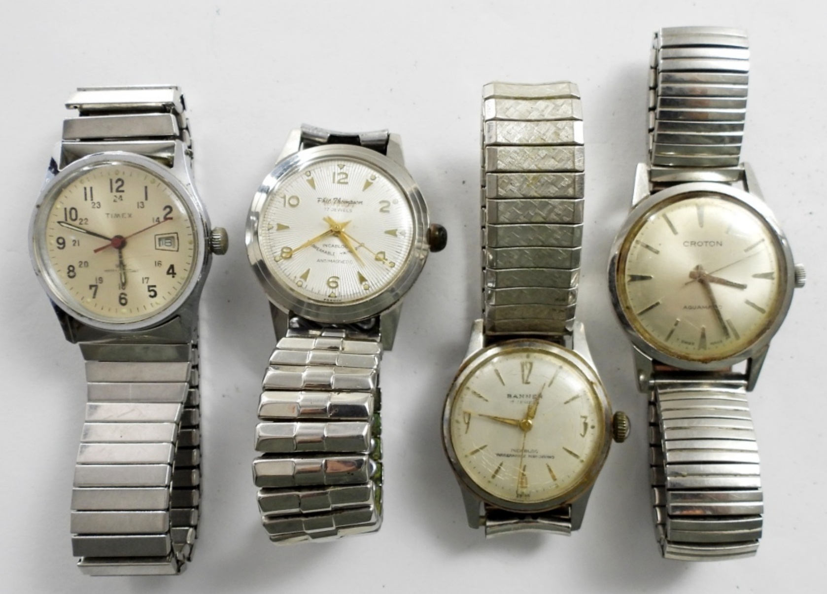 ALL RUNNING – NEEDS SERVICED – TIMEX DAY/DATE, CROTON, BANNER 17j, PHIL THOMPSON 17j
