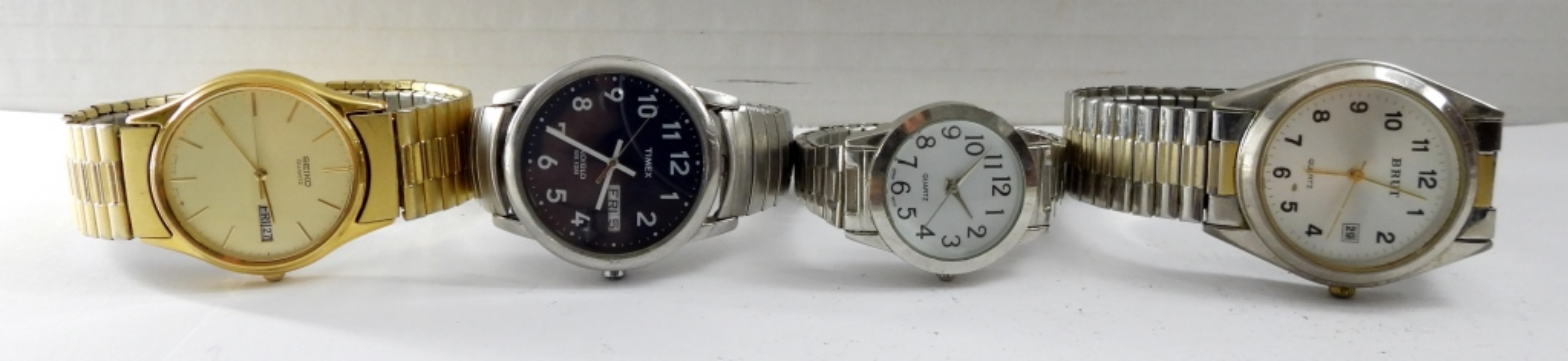 ALL UNTESTED / NEEDS BATTERY – BRUT, TIMEX DAY/DATE, SEIKO DAY/DATE, ACCUTIME