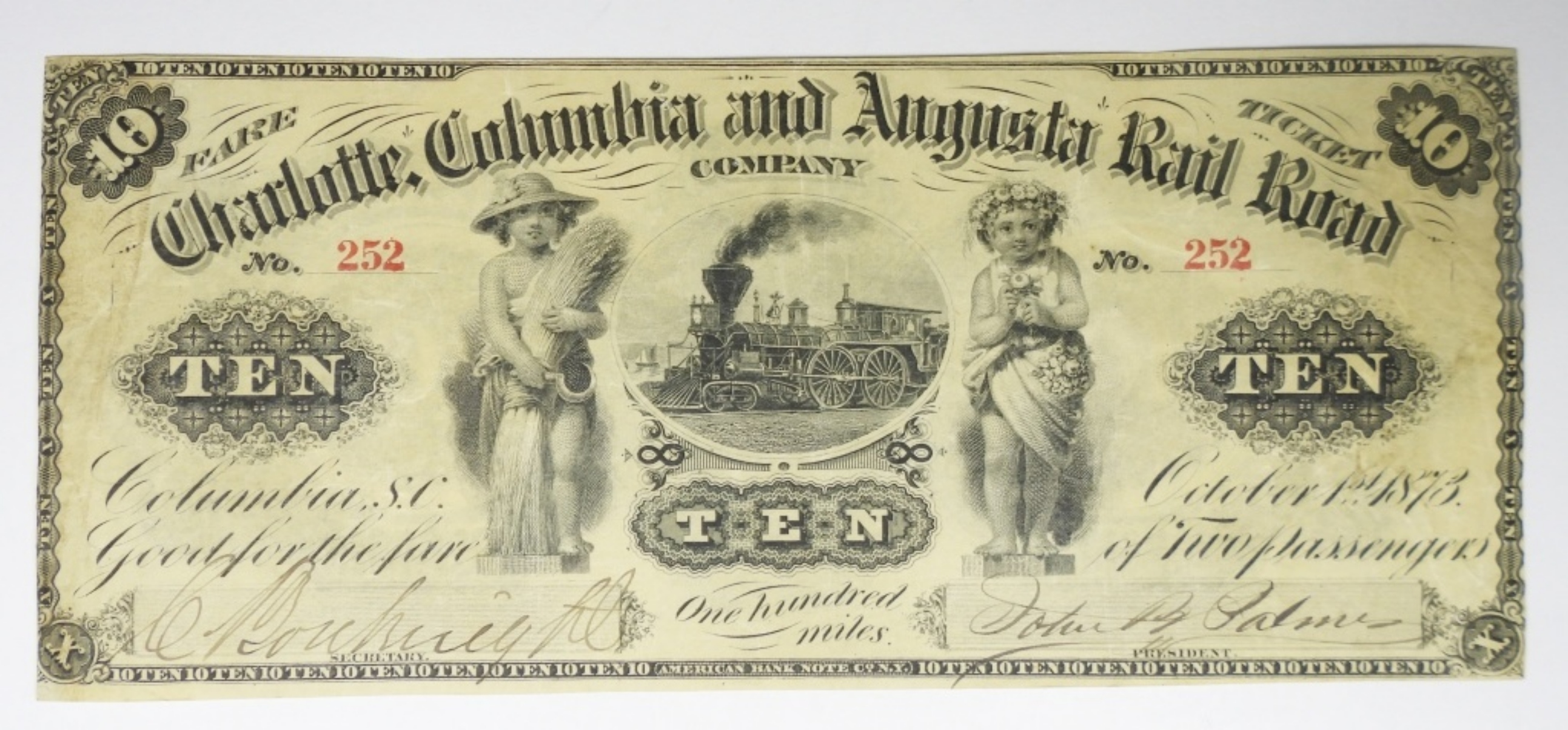 C.C& AUGUSTA RAIL ROAD $10 OBSOLETE