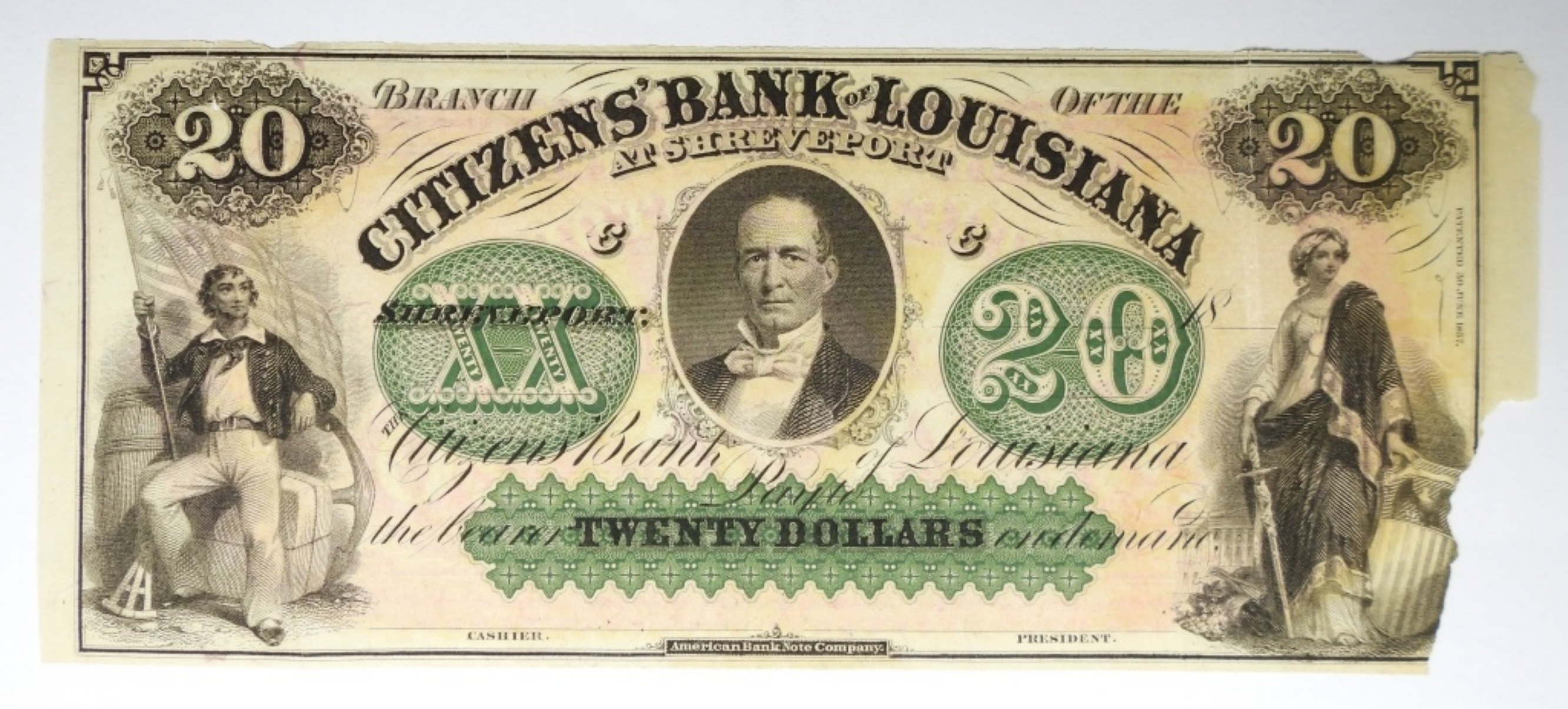 CITIZENS BANK OF LOUISIANA AT SHREVEPORT $20 OBSOLETE NOTE