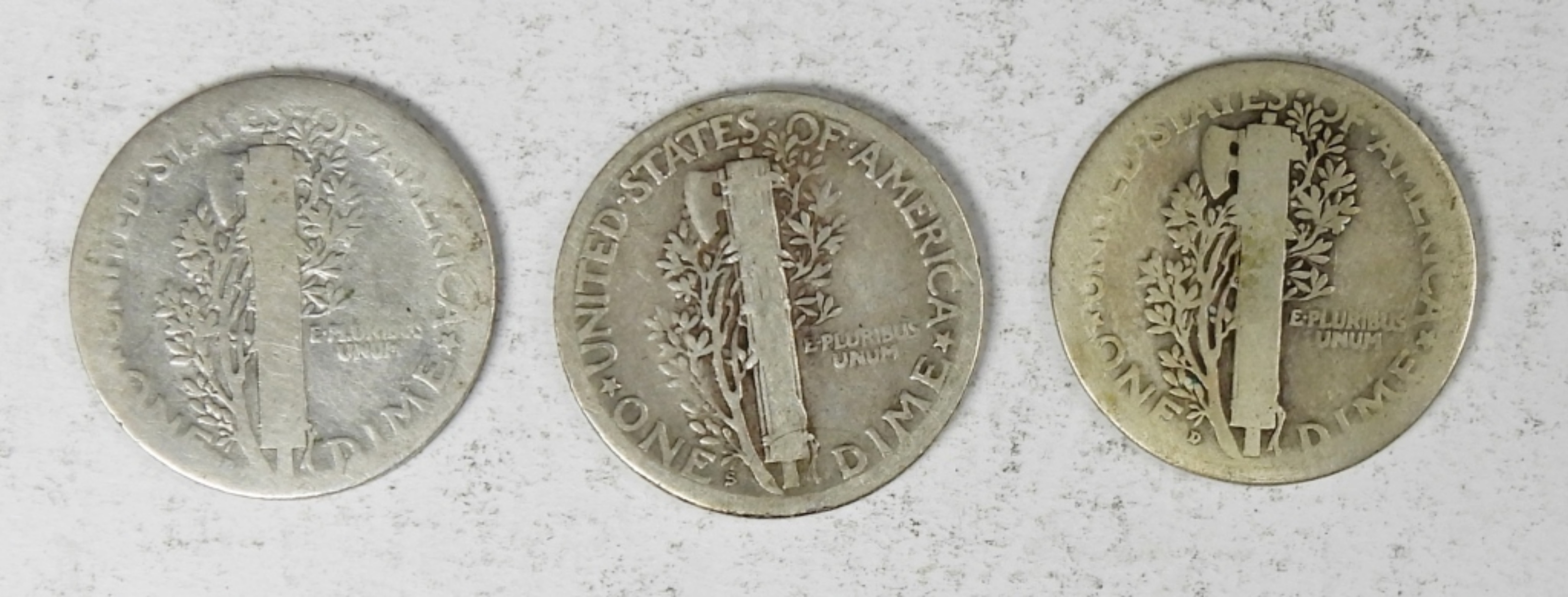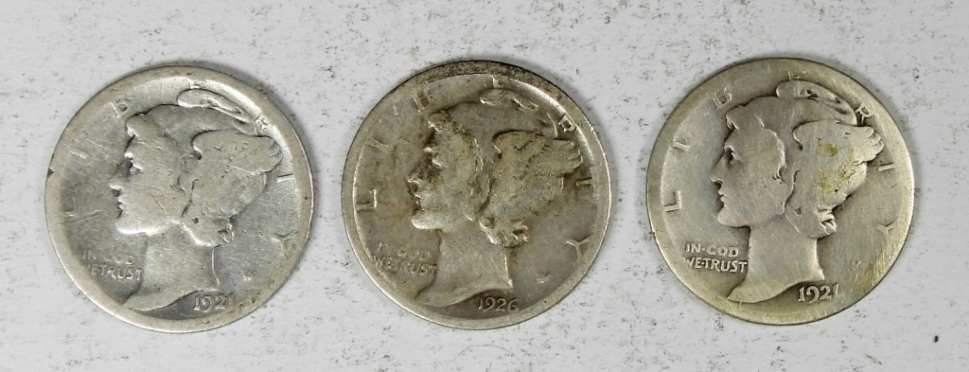 1921, 1921-D, 1926-S MERCURY DIME LOT