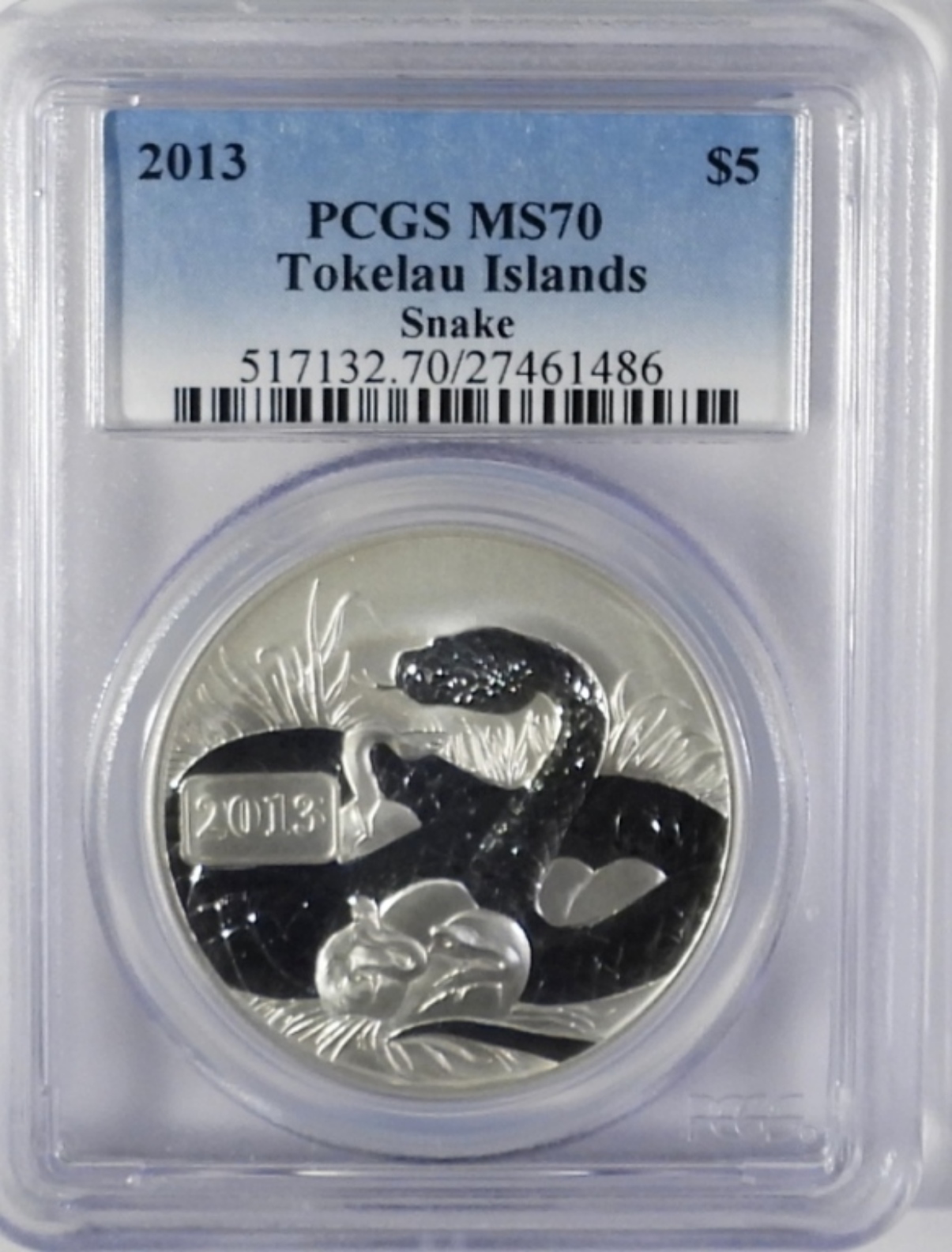 2013 $5 PCGS MS70 TOKELAU ISLAND SNAKE 1OZ 999 SILVER